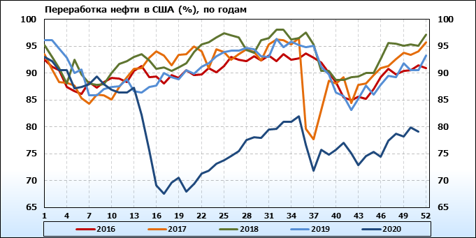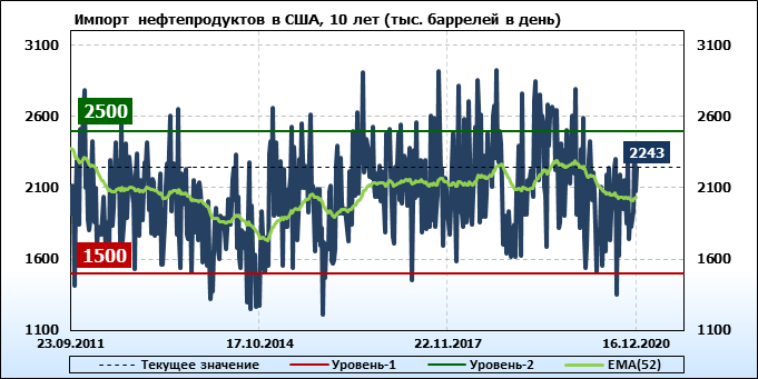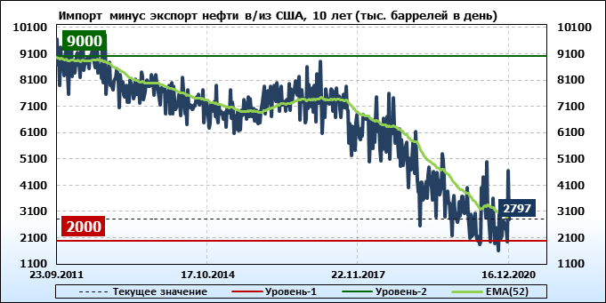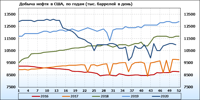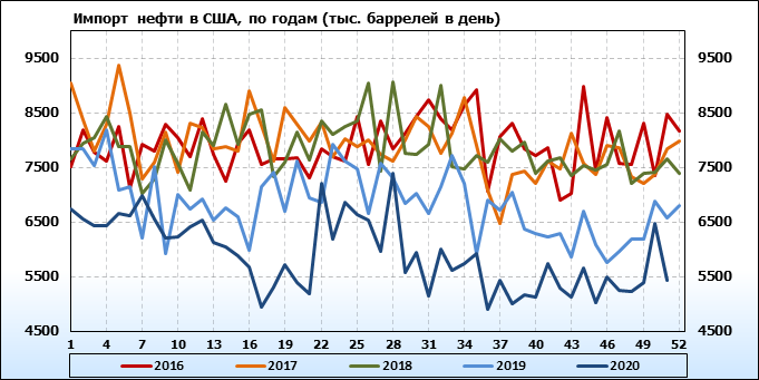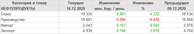 EIA. Добыча, импорт, экспорт нефти в США на 16 декабря 2020