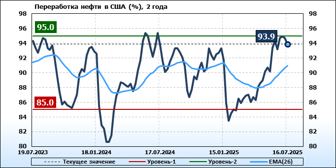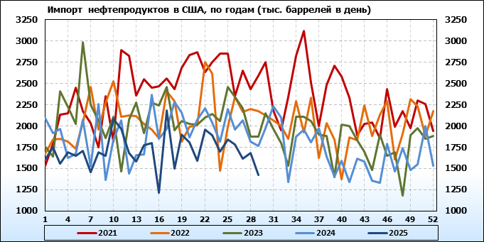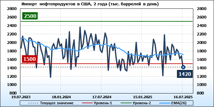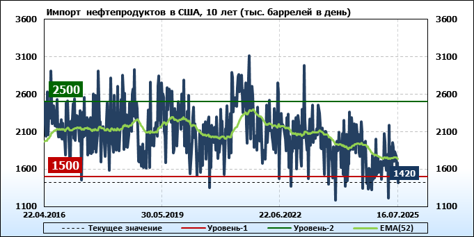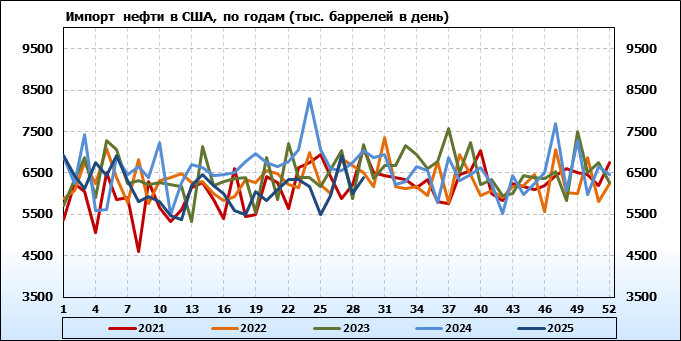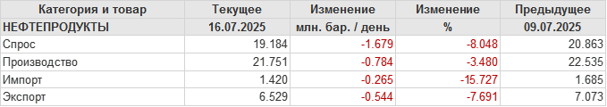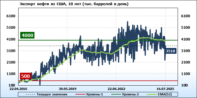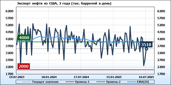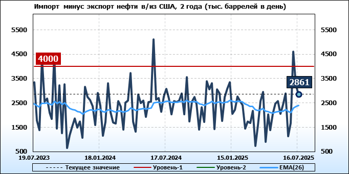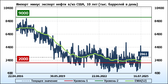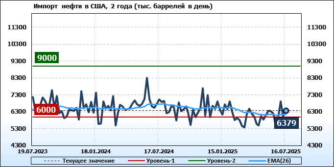 EIA. Добыча, импорт, экспорт нефти в США на 16 июля 2025
