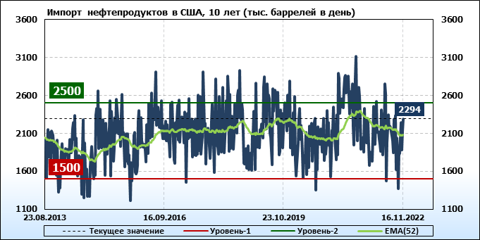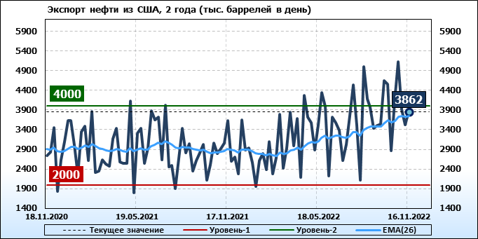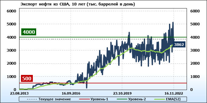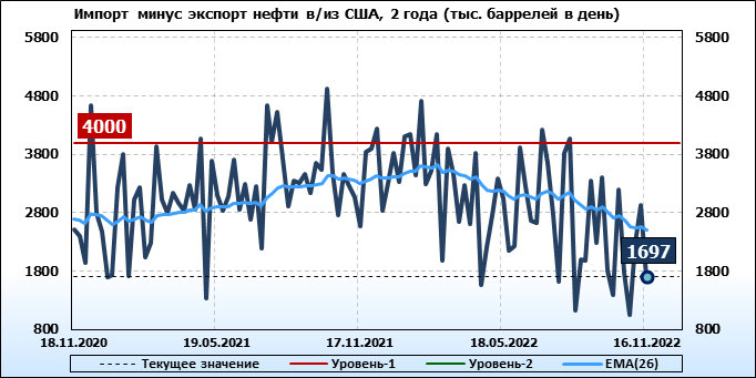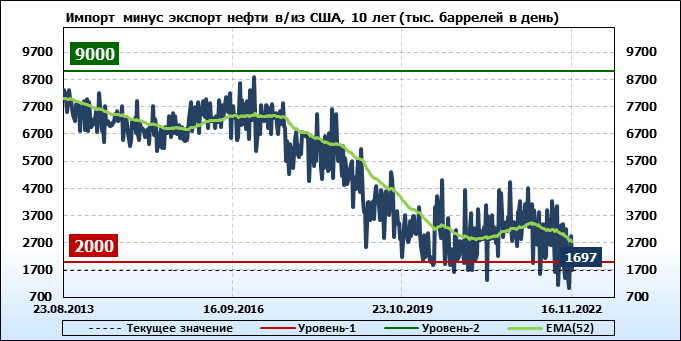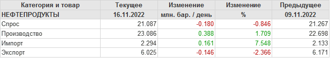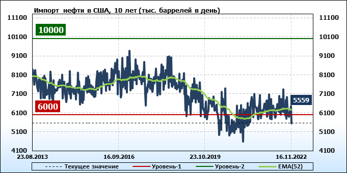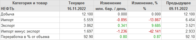 EIA. Добыча, импорт, экспорт нефти в США на 16 ноября 2022