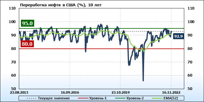 EIA. Коммерческие запасы нефти в США на 16 ноября 2022