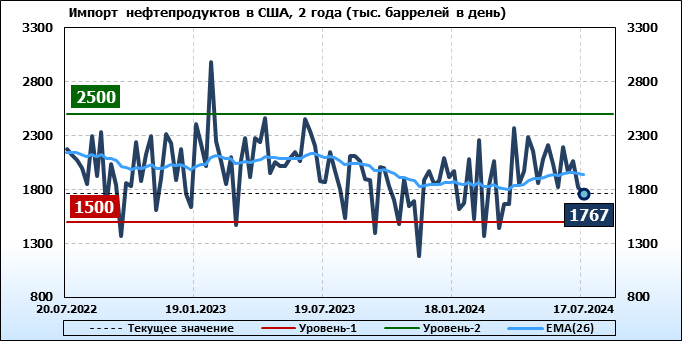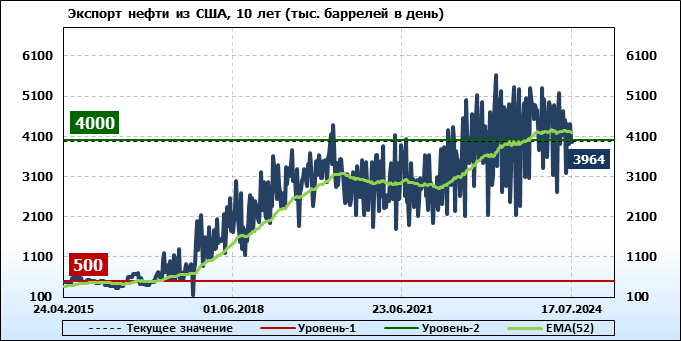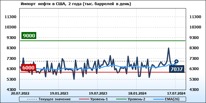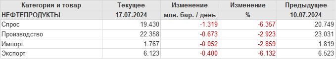 EIA. Добыча, импорт, экспорт нефти в США на 17 июля 2024