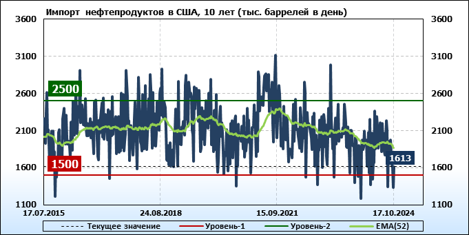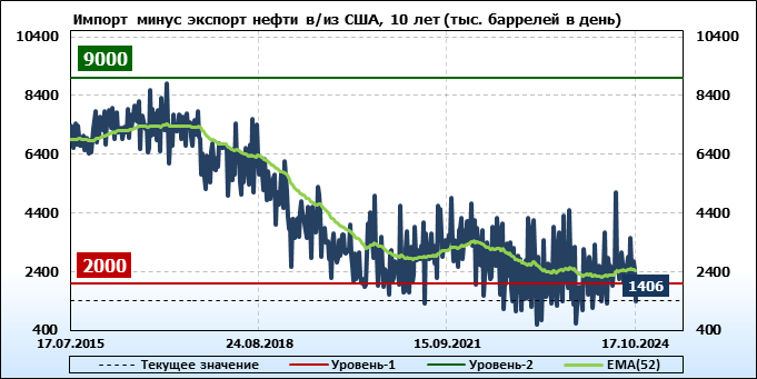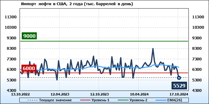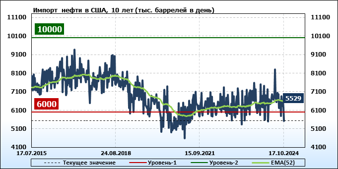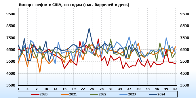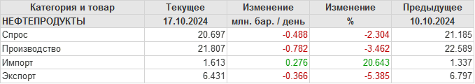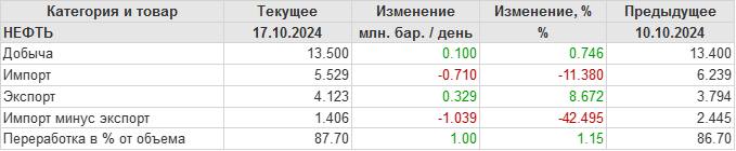 EIA. Добыча, импорт, экспорт нефти в США на 17 октября 2024