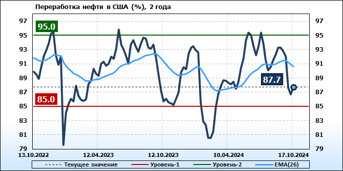 EIA. Коммерческие запасы нефти в США на 17 октября 2024