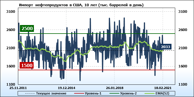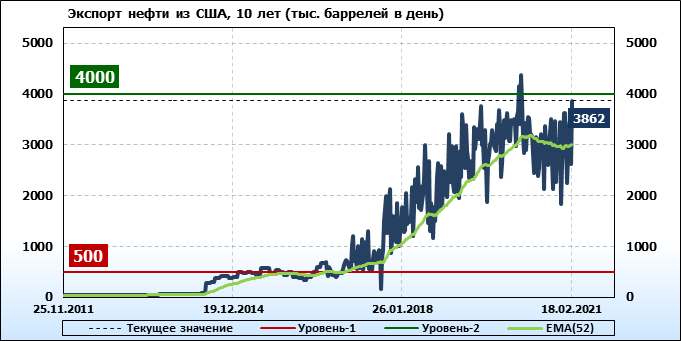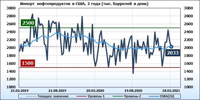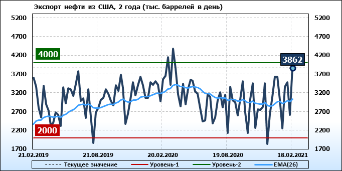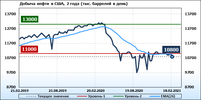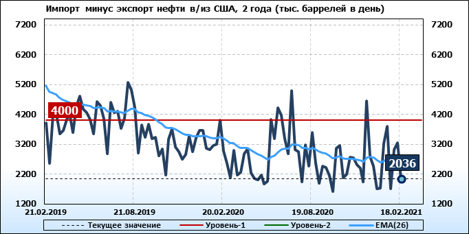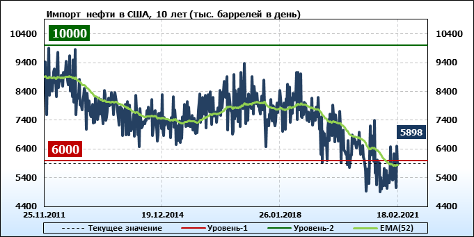 EIA. Добыча, импорт, экспорт нефти в США на 18 февраля 2021