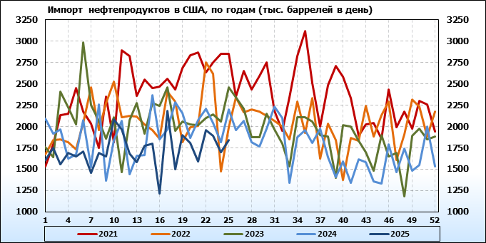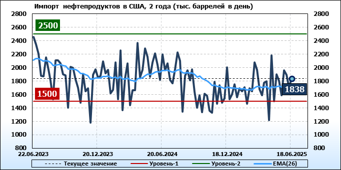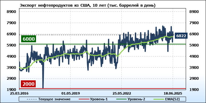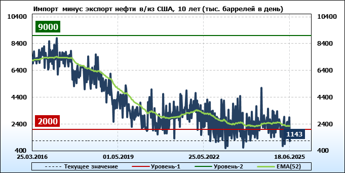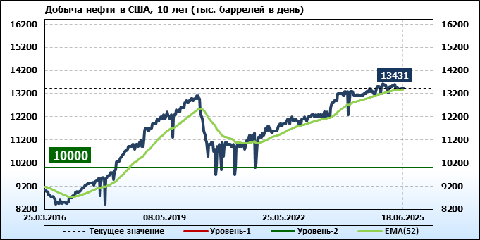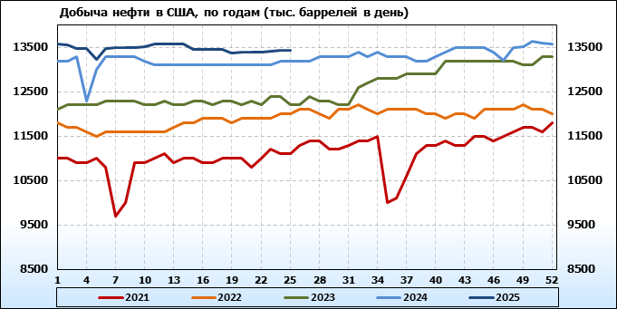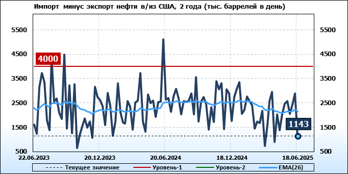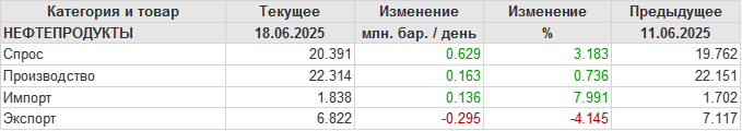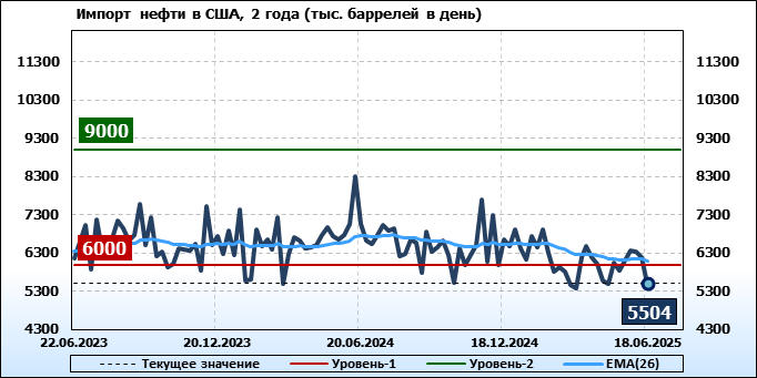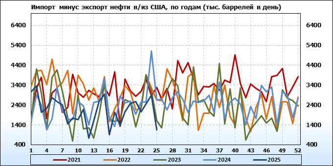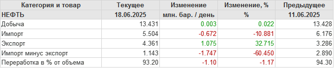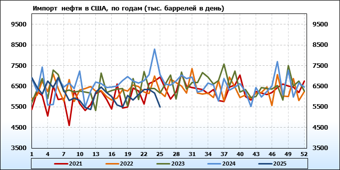EIA. Добыча, импорт, экспорт нефти в США на 18 июня 2025
