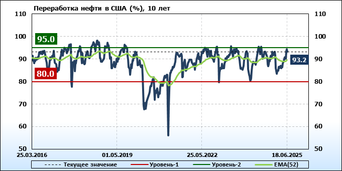 EIA. Коммерческие запасы нефти в США на 18 июня 2025