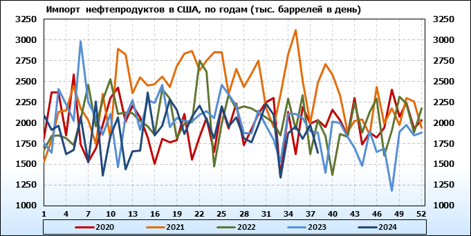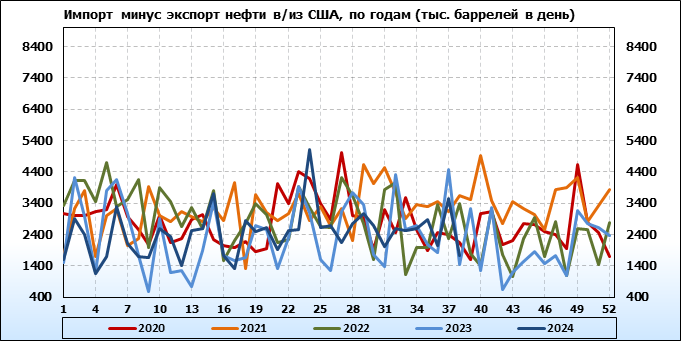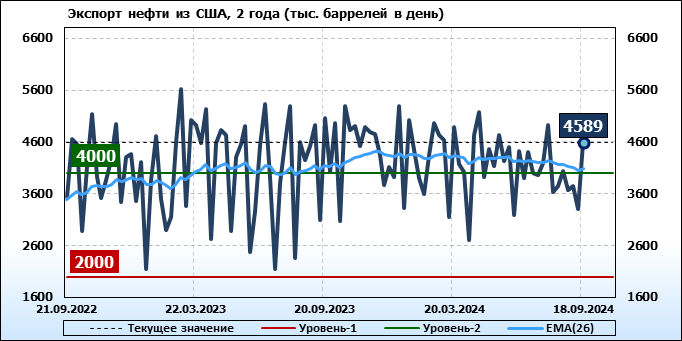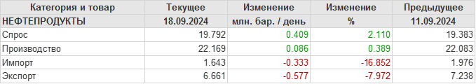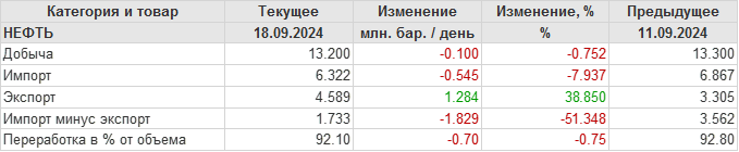 EIA. Добыча, импорт, экспорт нефти в США на 18 сентября 2024