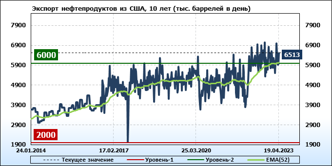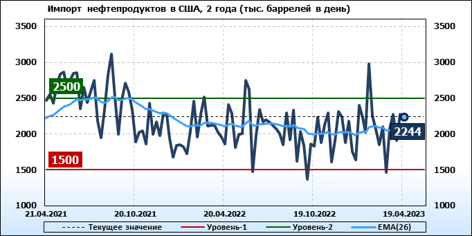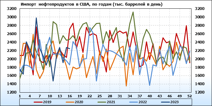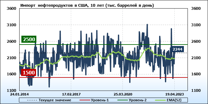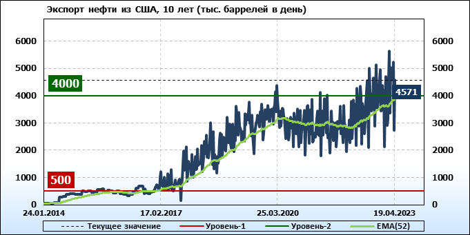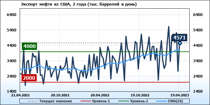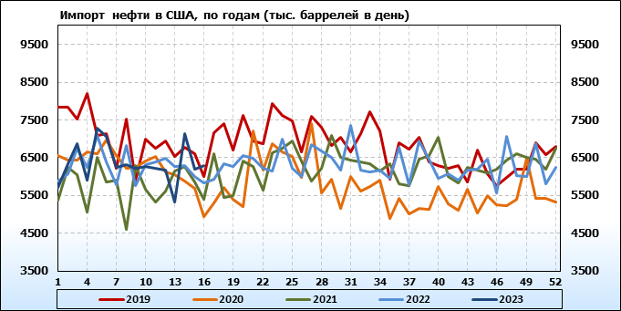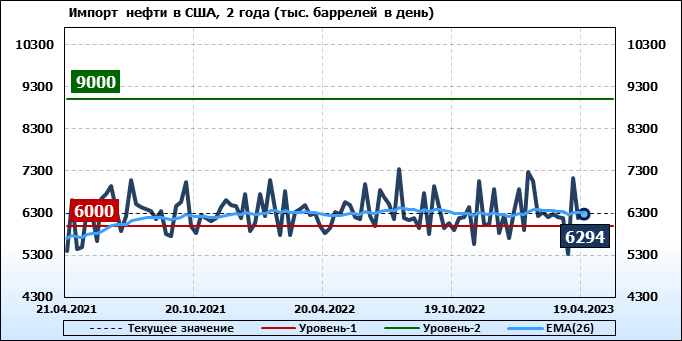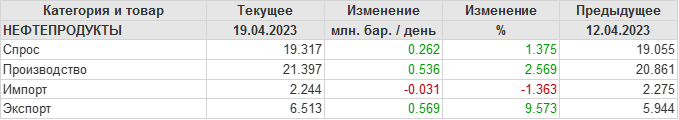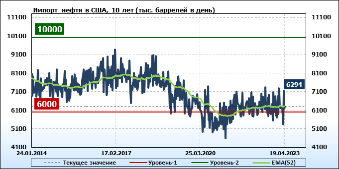 EIA. Добыча, импорт, экспорт нефти в США на 19 апреля 2023