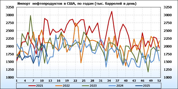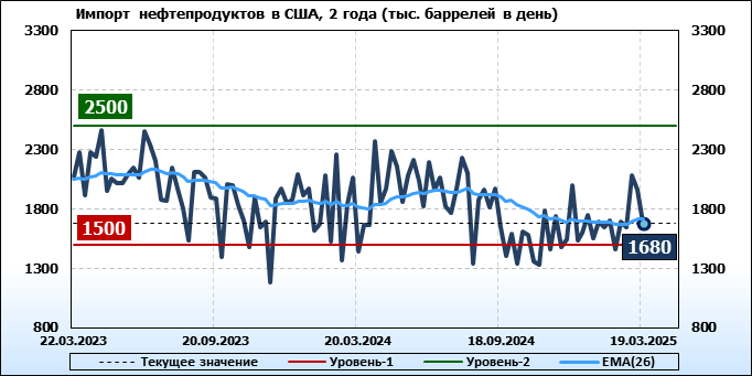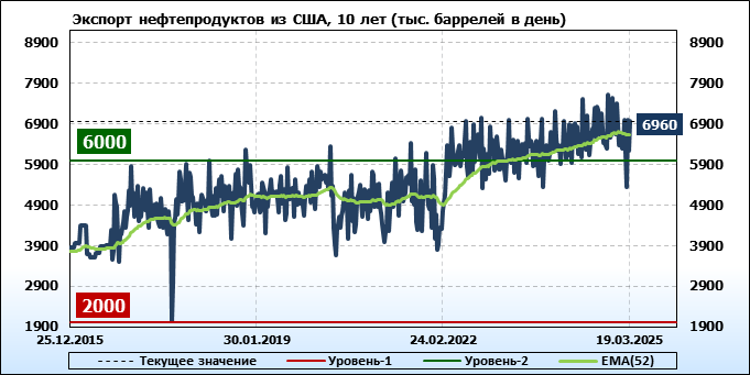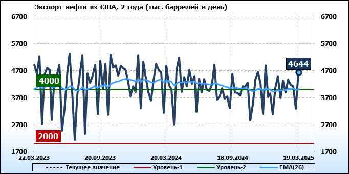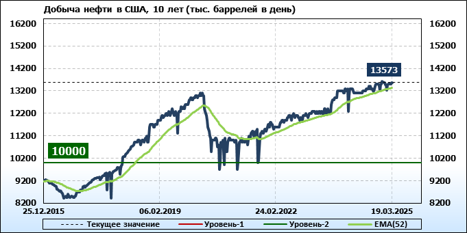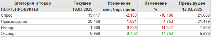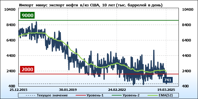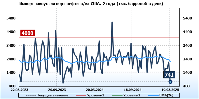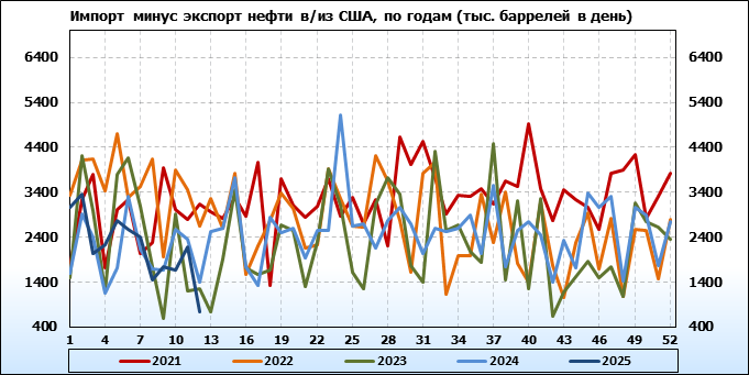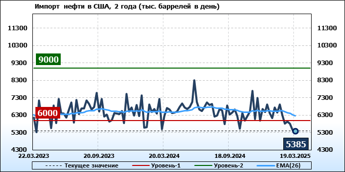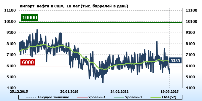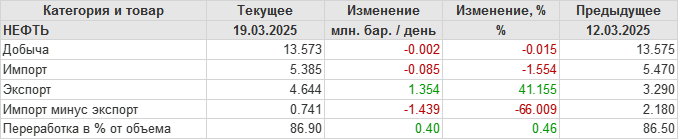 EIA. Добыча, импорт, экспорт нефти в США на 19 марта 2025
