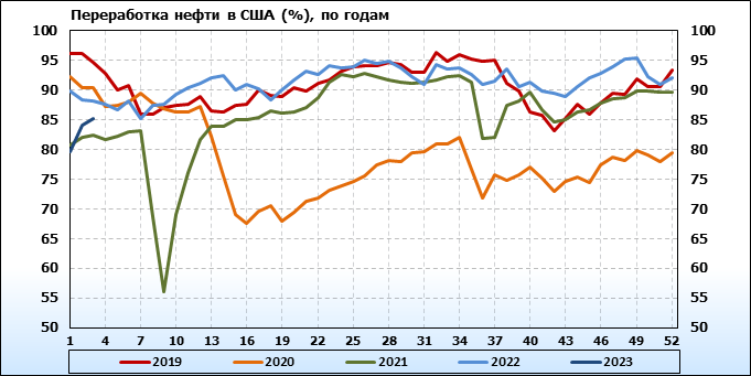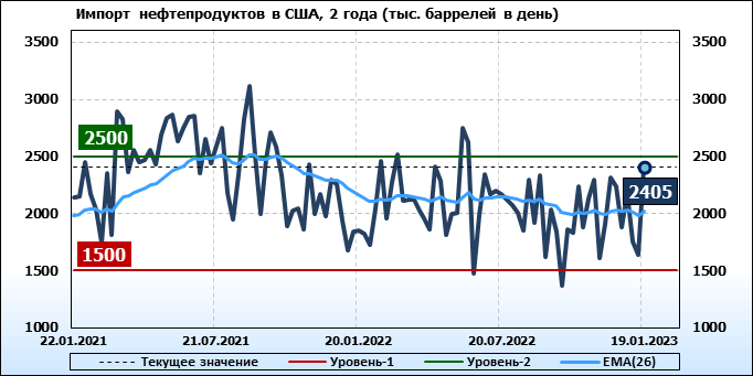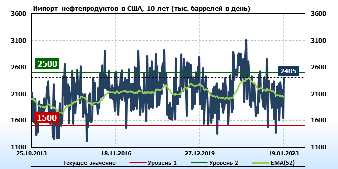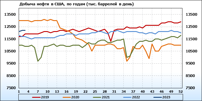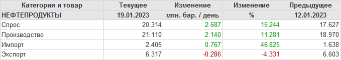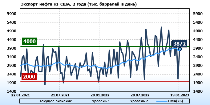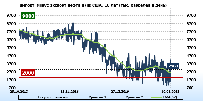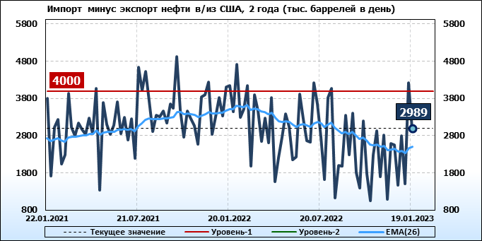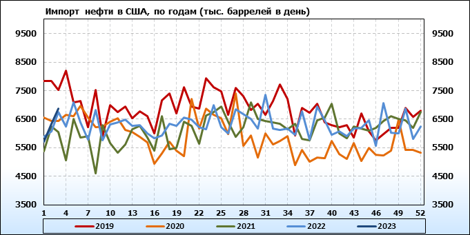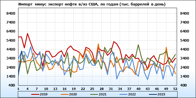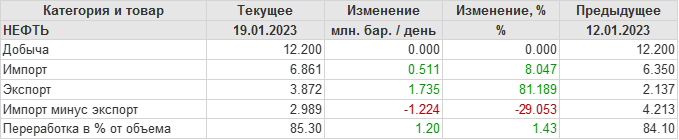 EIA. Добыча, импорт, экспорт нефти в США на 19 января 2023