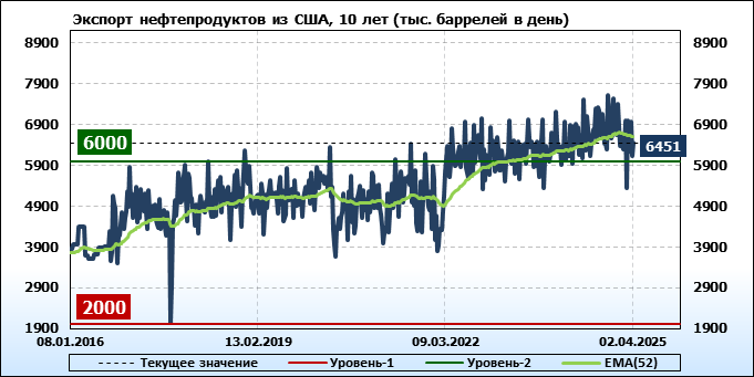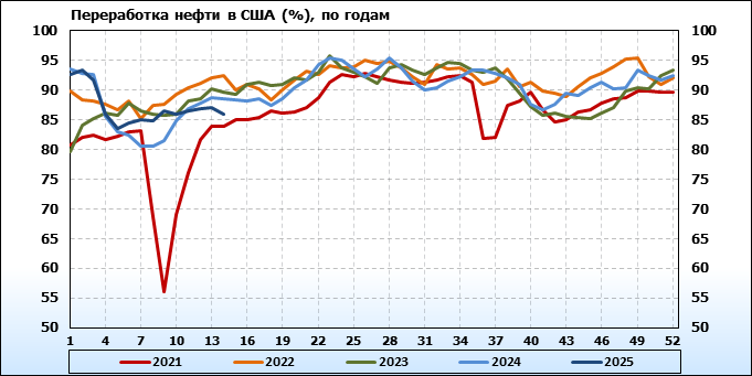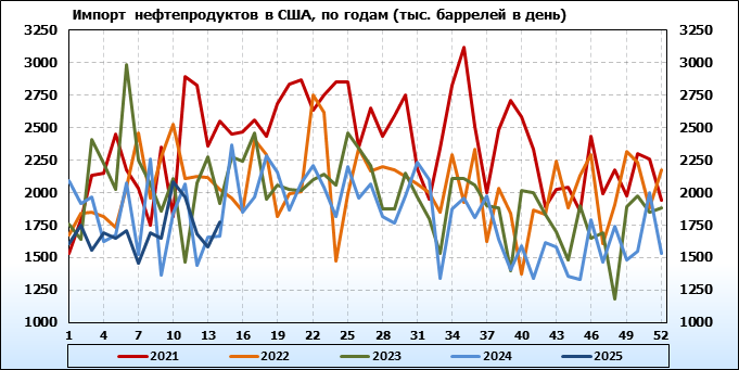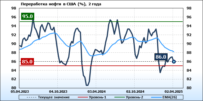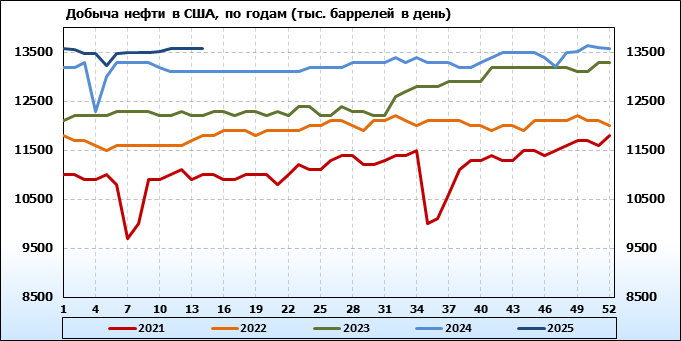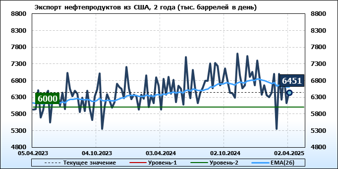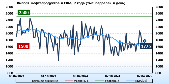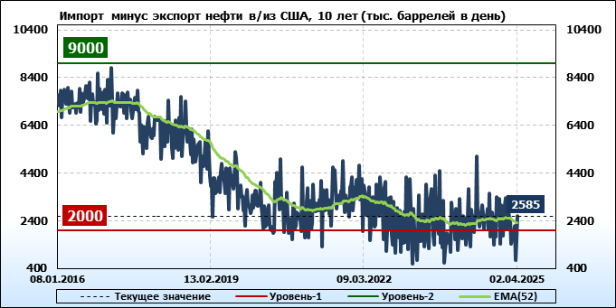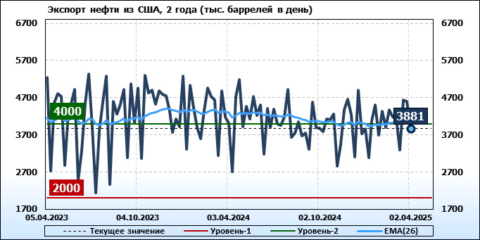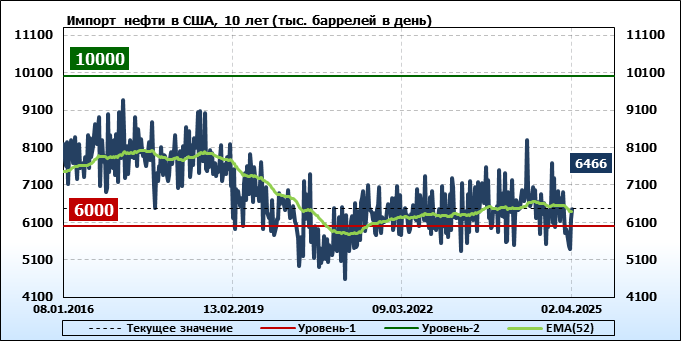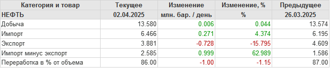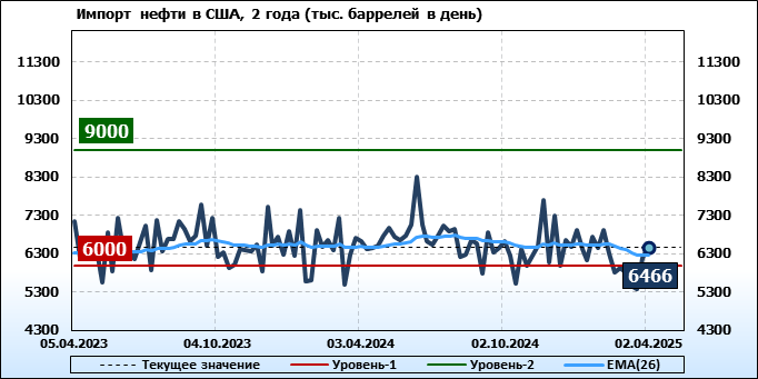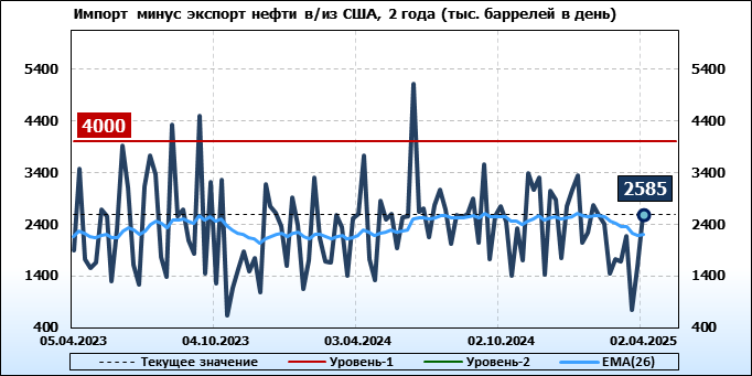 EIA. Добыча, импорт, экспорт нефти в США на 2 апреля 2025