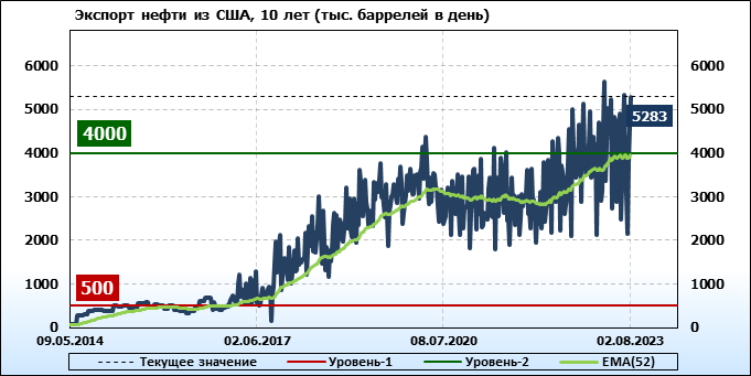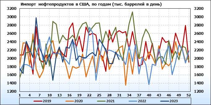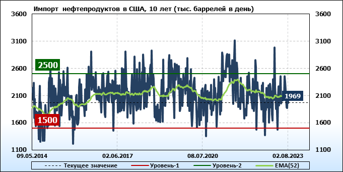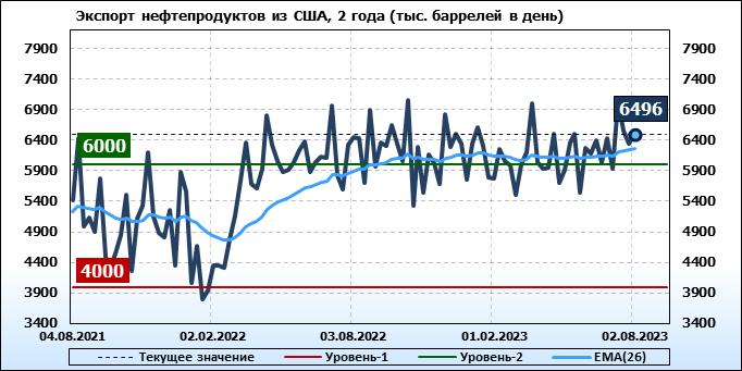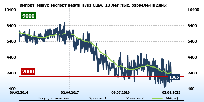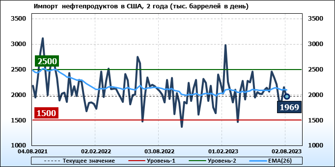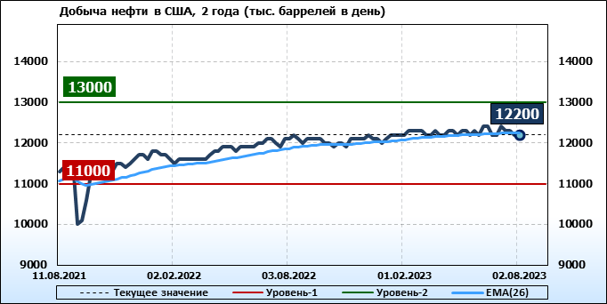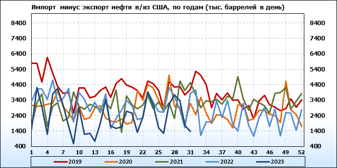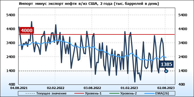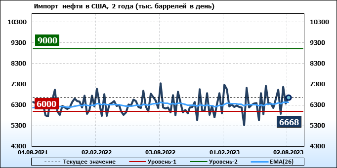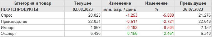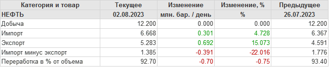EIA. Добыча, импорт, экспорт нефти в США на 2 августа 2023