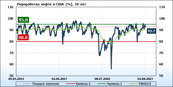 EIA. Коммерческие запасы нефти в США на 2 августа 2023