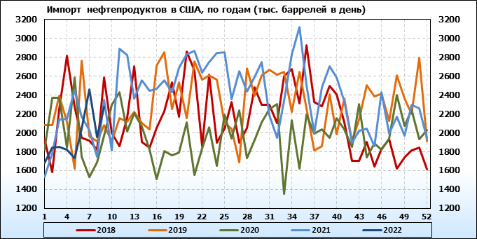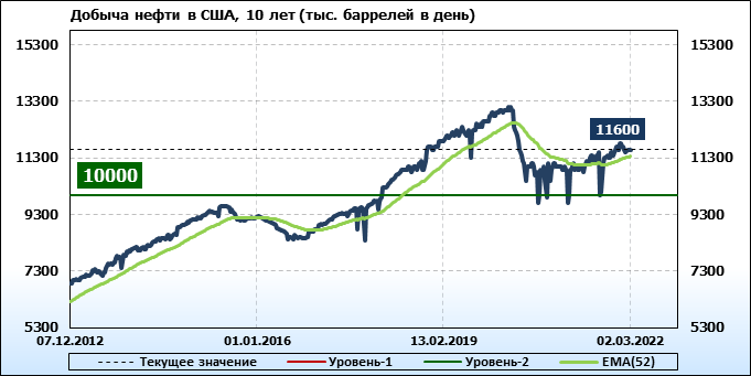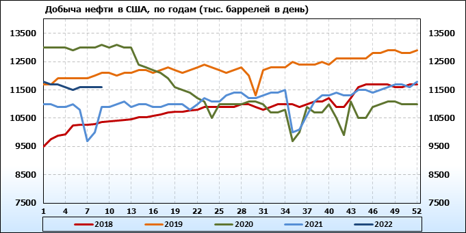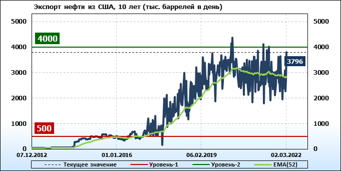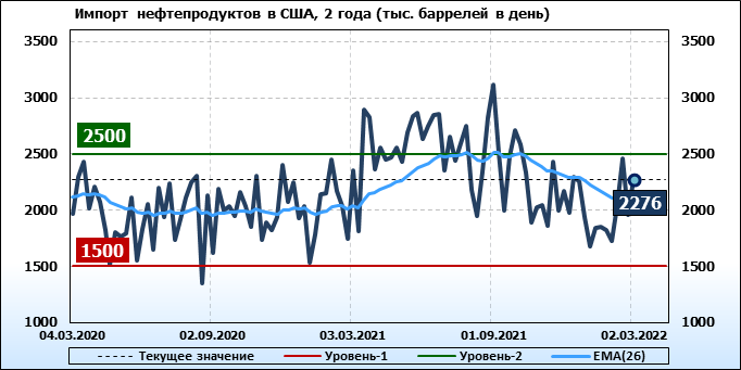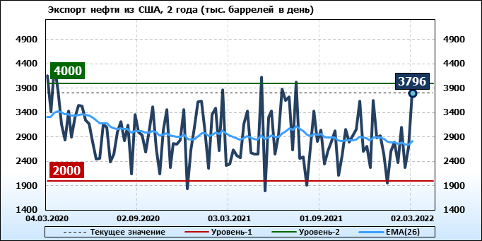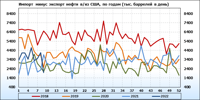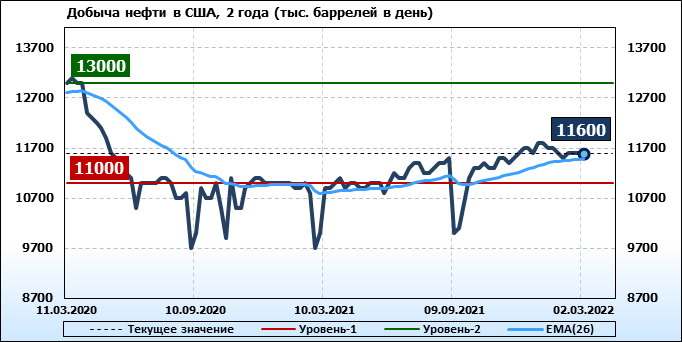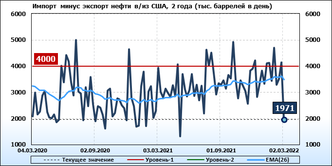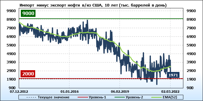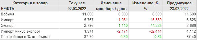 EIA. Добыча, импорт, экспорт нефти в США на 2 марта 2022