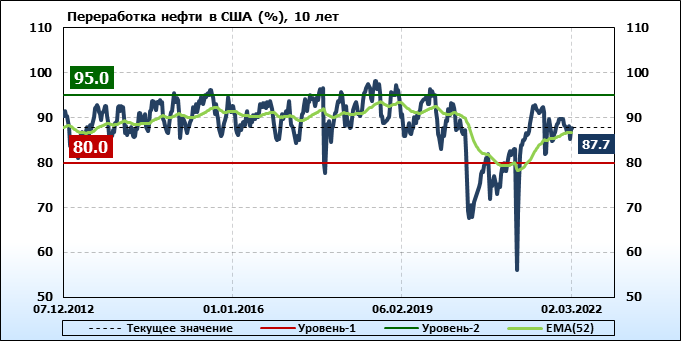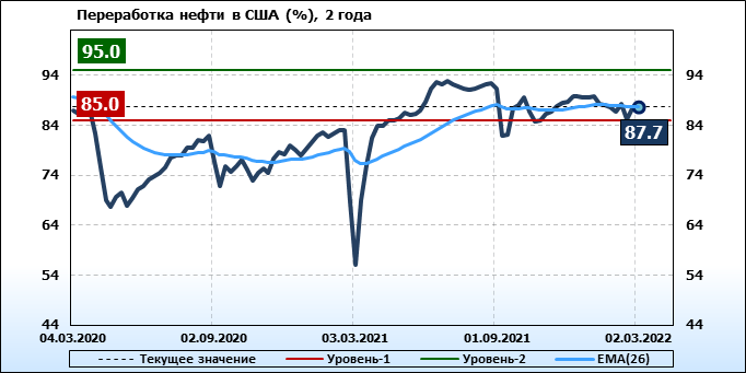 EIA. Коммерческие запасы нефти в США на 2 марта 2022