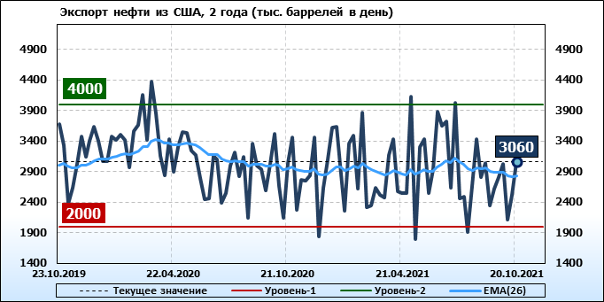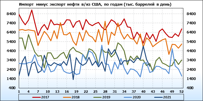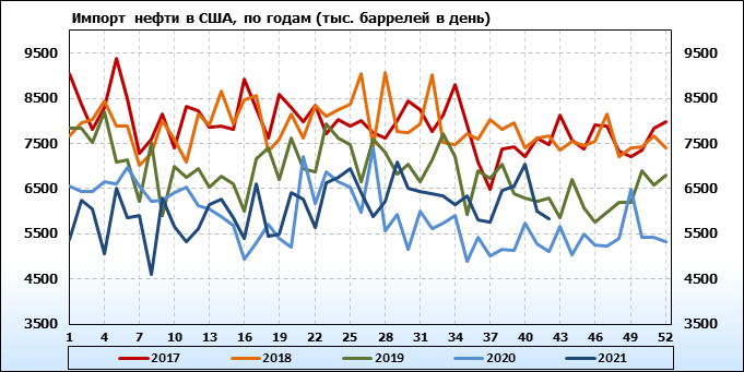 EIA. Добыча, импорт, экспорт нефти в США на 20 октября 2021