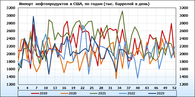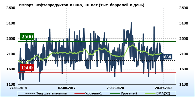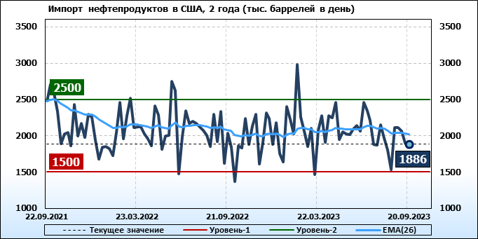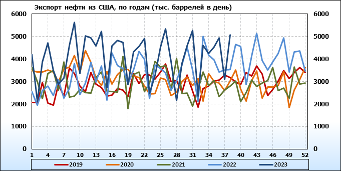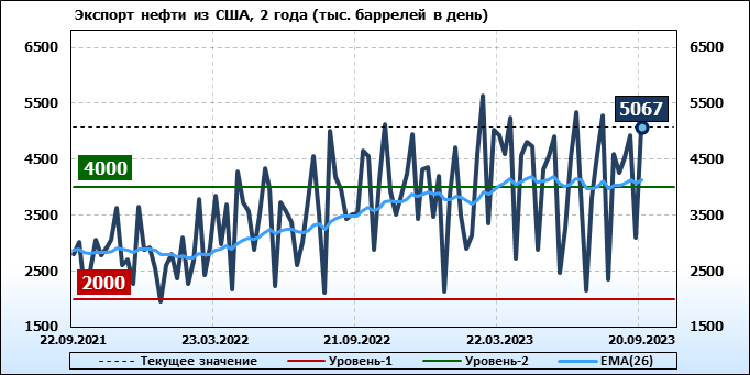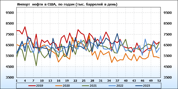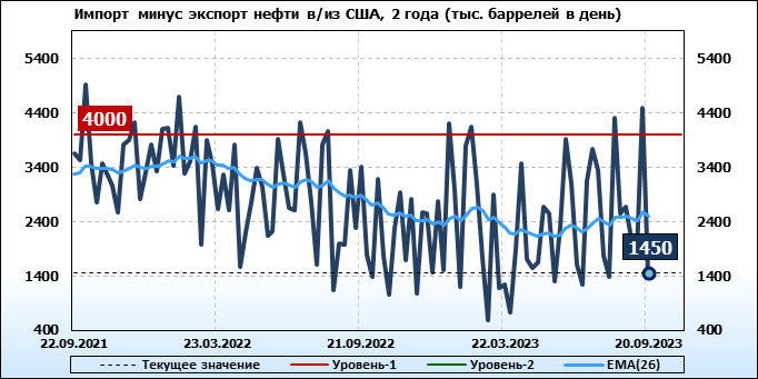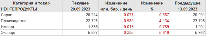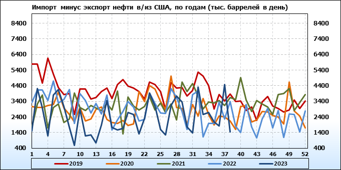 EIA. Добыча, импорт, экспорт нефти в США на 20 сентября 2023