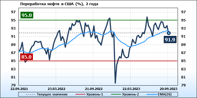 EIA. Коммерческие запасы нефти в США на 20 сентября 2023