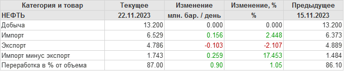 EIA. Добыча, импорт, экспорт нефти в США на 22 ноября 2023