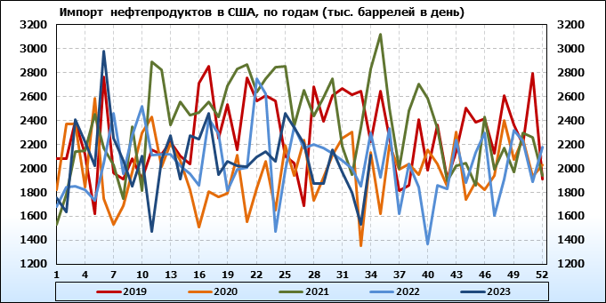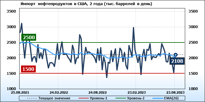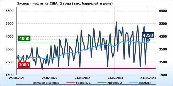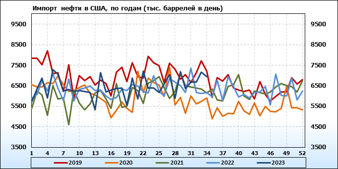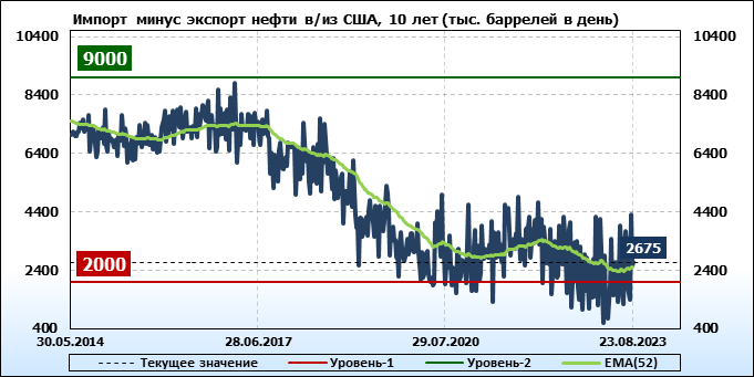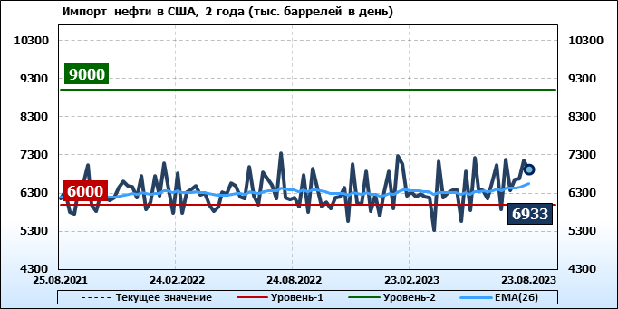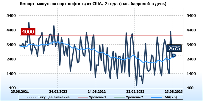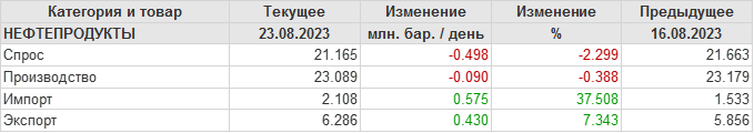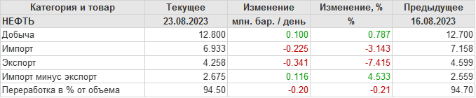 EIA. Добыча, импорт, экспорт нефти в США на 23 августа 2023