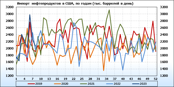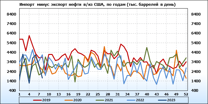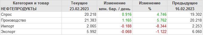 EIA. Добыча, импорт, экспорт нефти в США на 23 февраля 2023