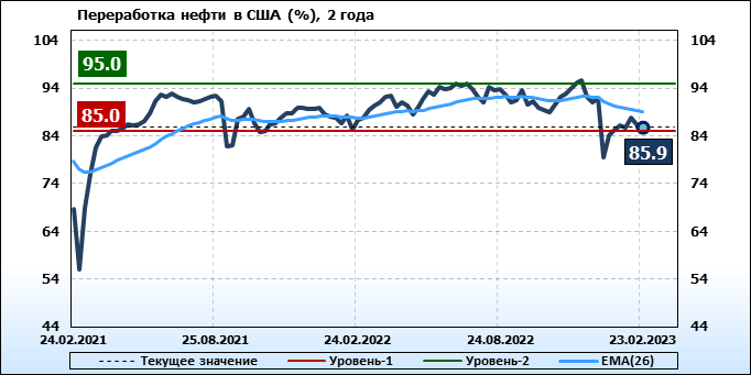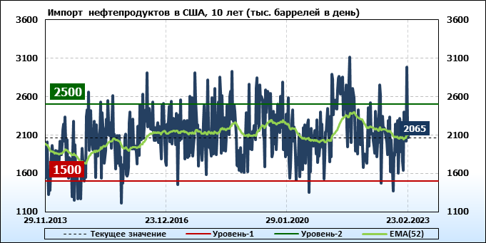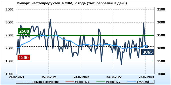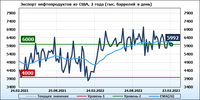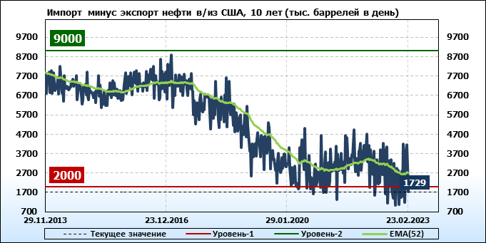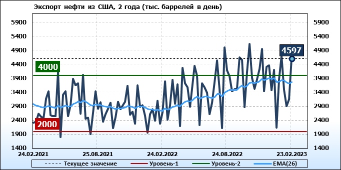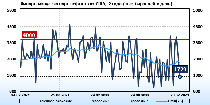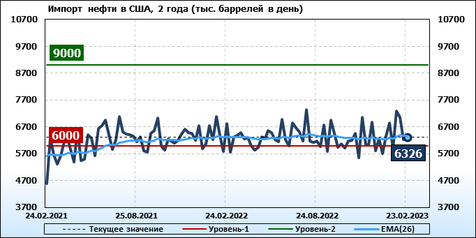 EIA. Добыча, импорт, экспорт нефти в США на 23 февраля 2023
