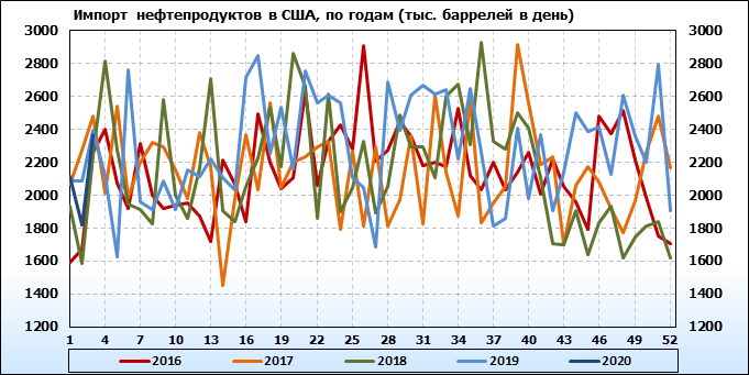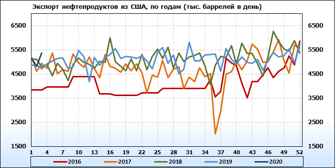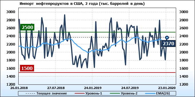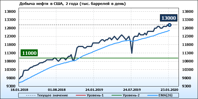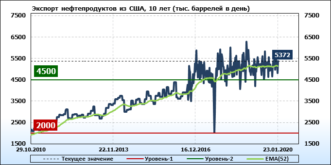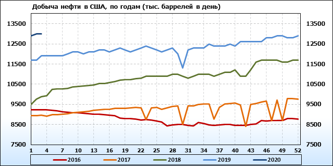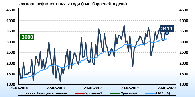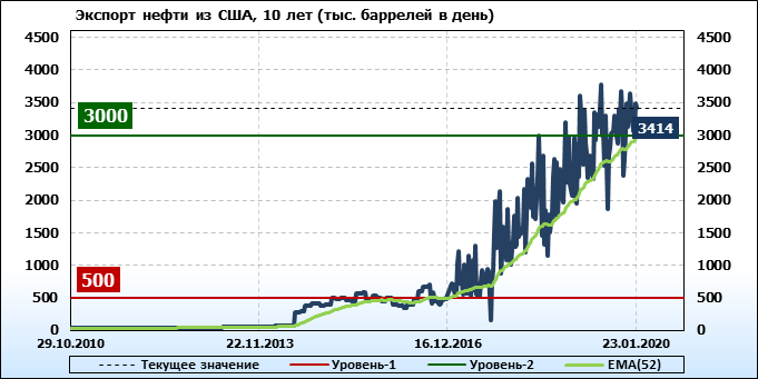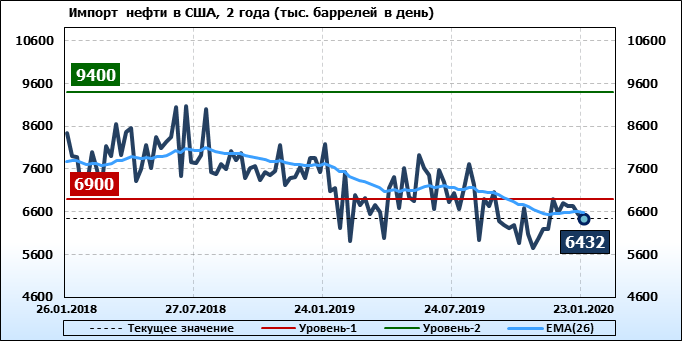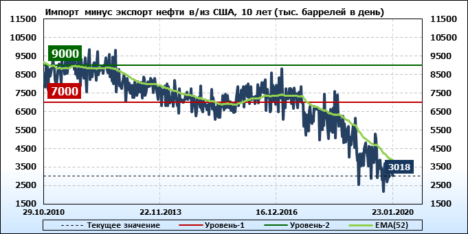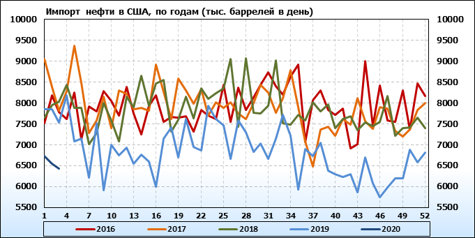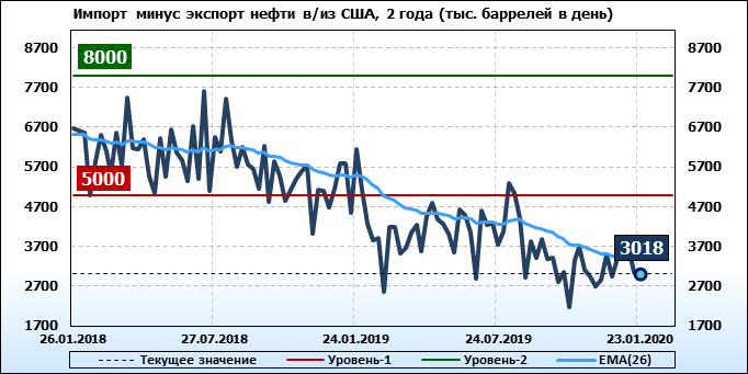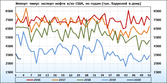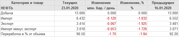 EIA. Добыча, импорт, экспорт нефти в США на 23 января 2020