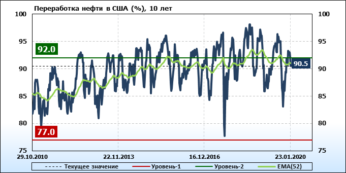 EIA. Коммерческие запасы нефти в США на 23 января 2020