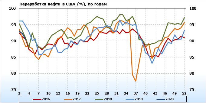 Добыча нефти не изменилась и составляет 13 млн. баррелей в день. Импорт нефти упал на -0.12 до 6.432 млн. баррелей в день. Экспорт нефти упал на -0.067 до 3.414 млн. баррелей в день. Таким образом, чистый импорт нефти упал на -0.053 до 3.018 млн. баррелей в день. Переработка нефти упала на -1.7 до 90.5 процента.