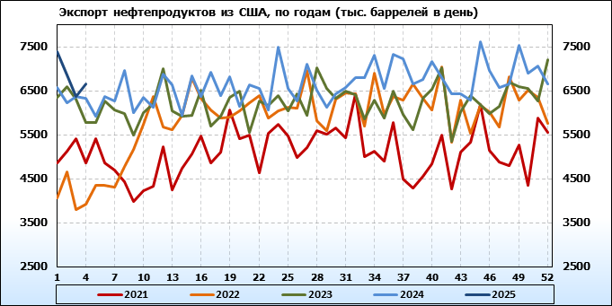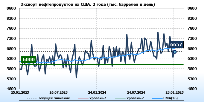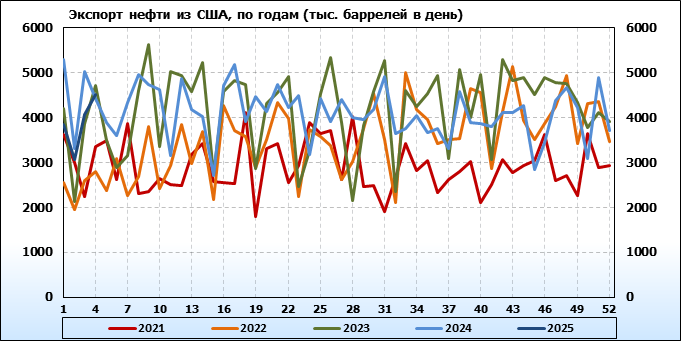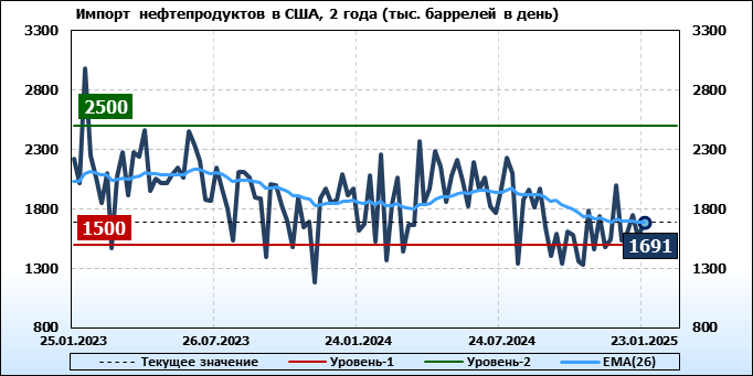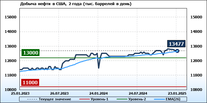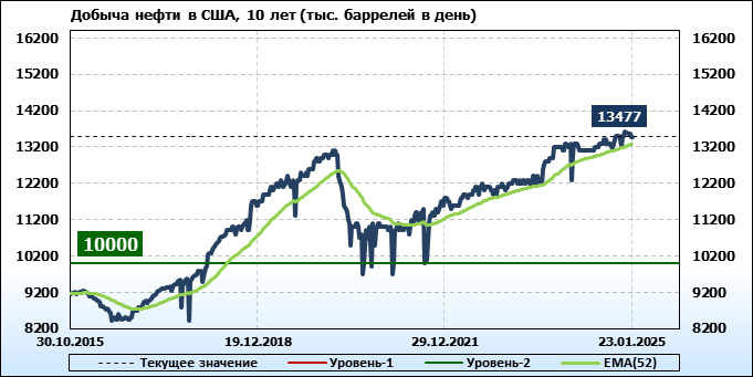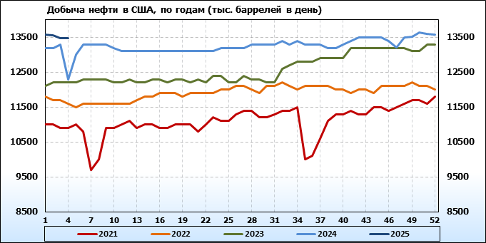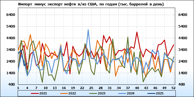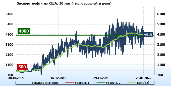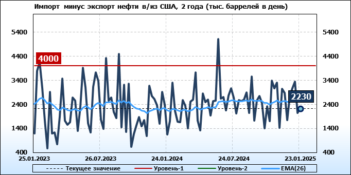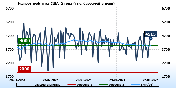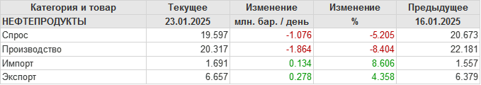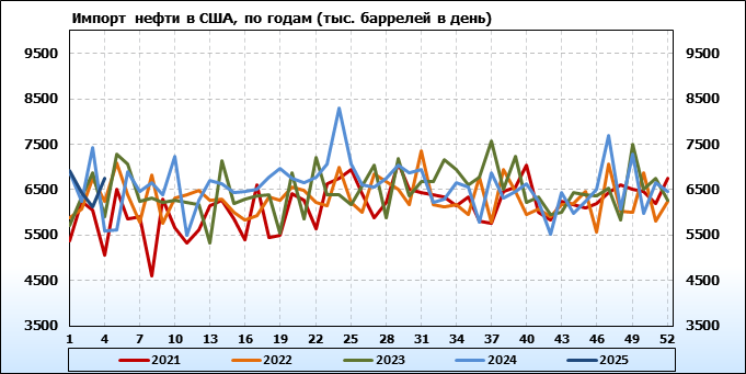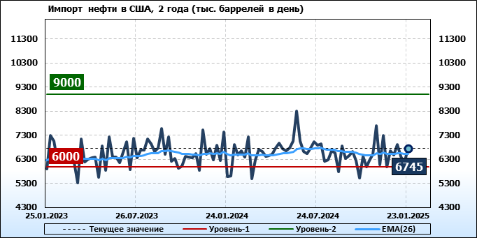 EIA. Добыча, импорт, экспорт нефти в США на 23 января 2025