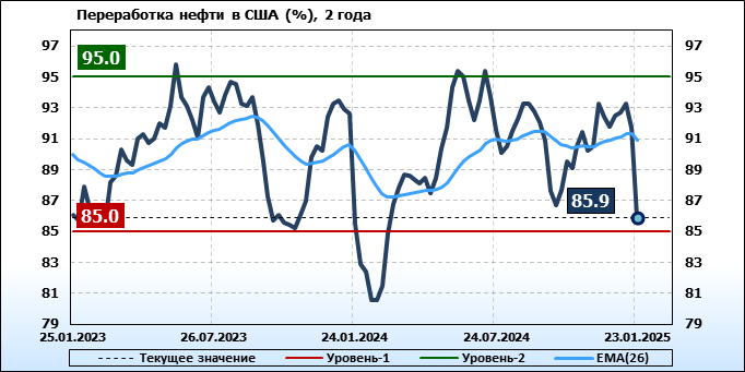 EIA. Коммерческие запасы нефти в США на 23 января 2025