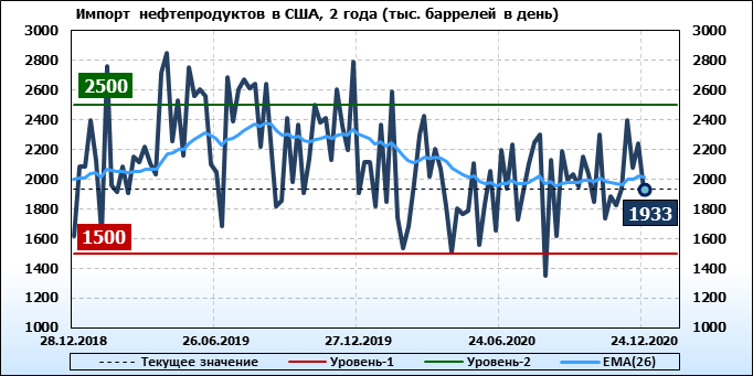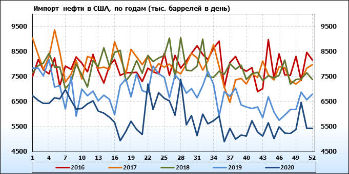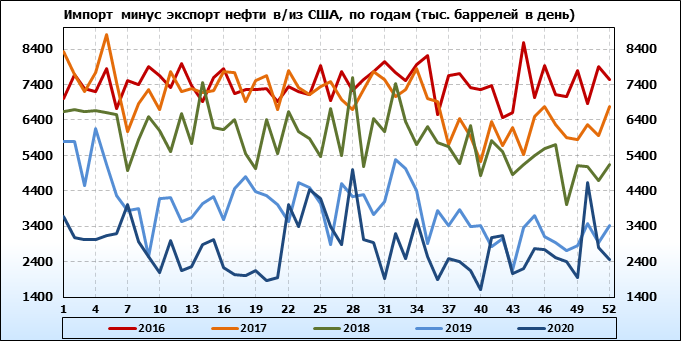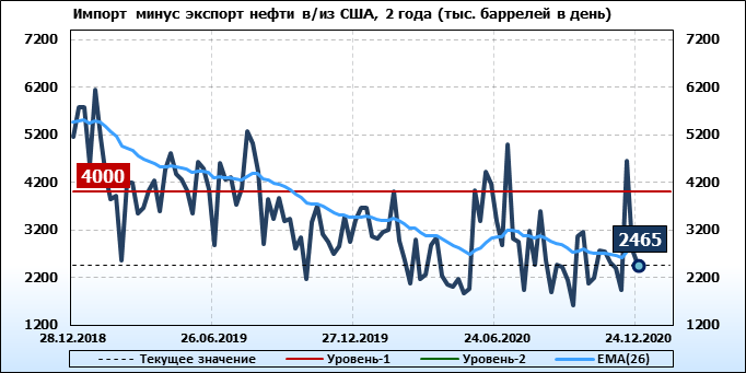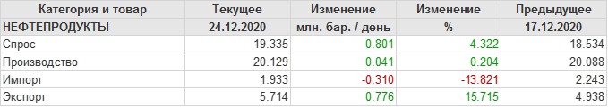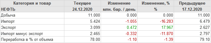EIA. Добыча, импорт, экспорт нефти в США на 24 декабря 2020