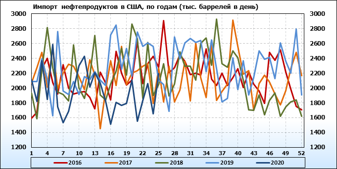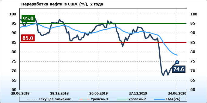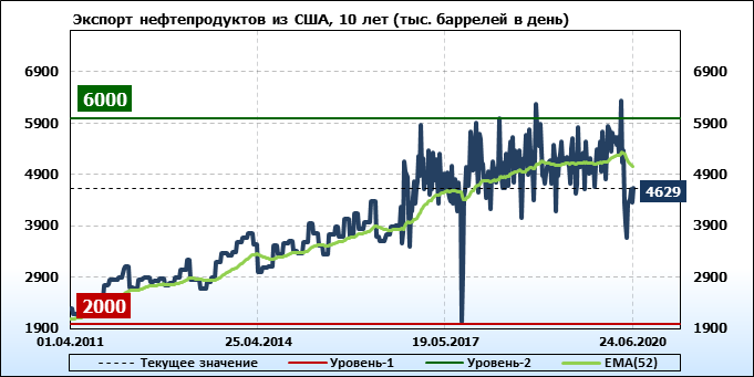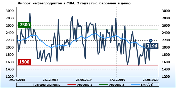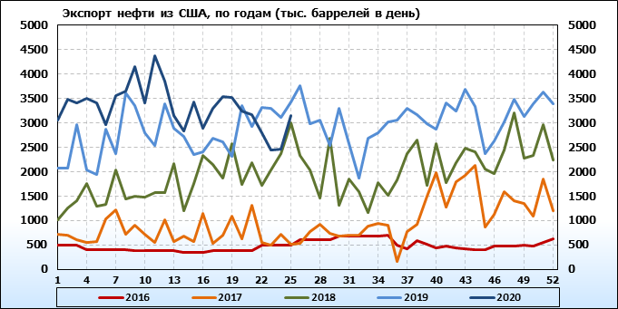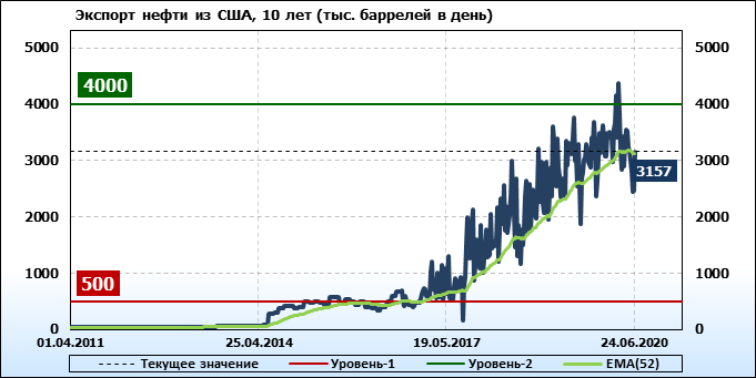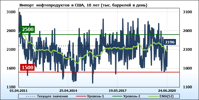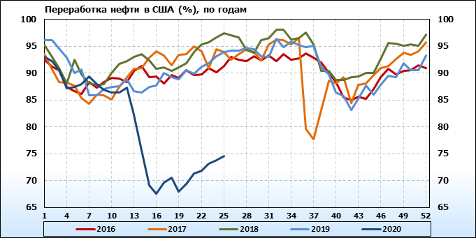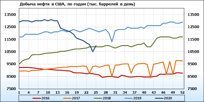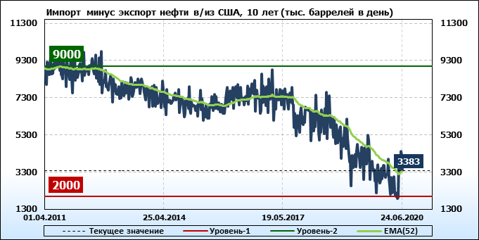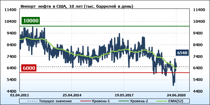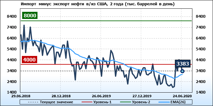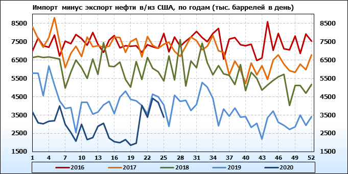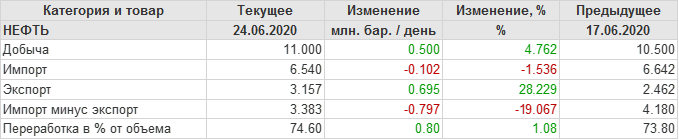 EIA. Добыча, импорт, экспорт нефти в США на 24 июня 2020