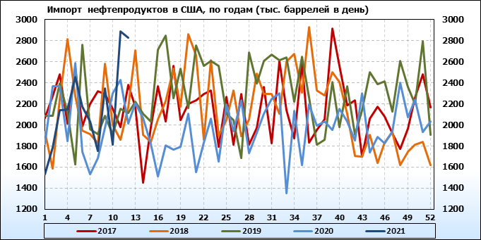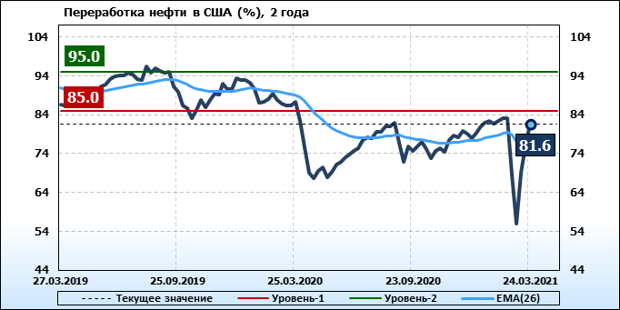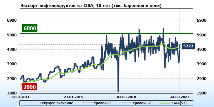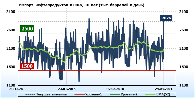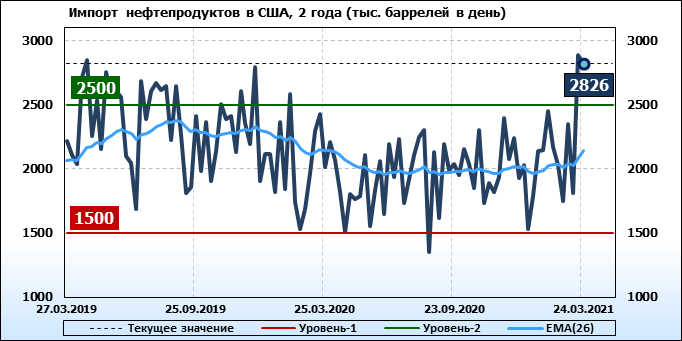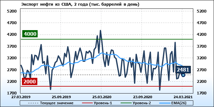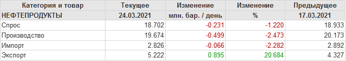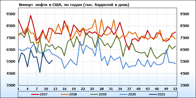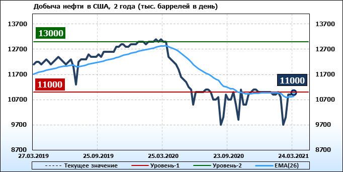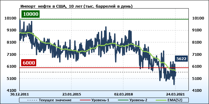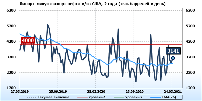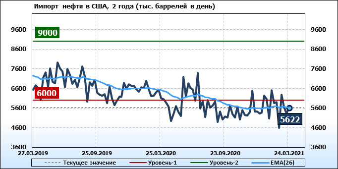 EIA. Добыча, импорт, экспорт нефти в США на 24 марта 2021