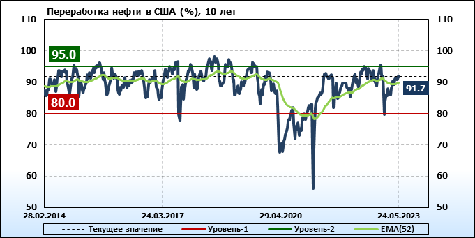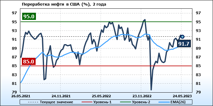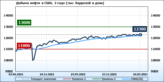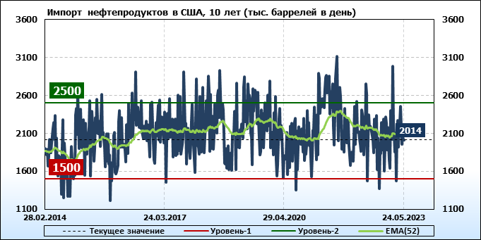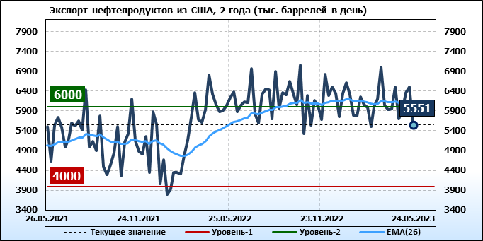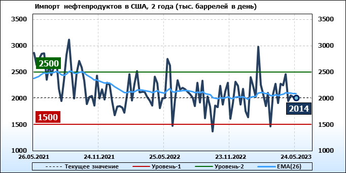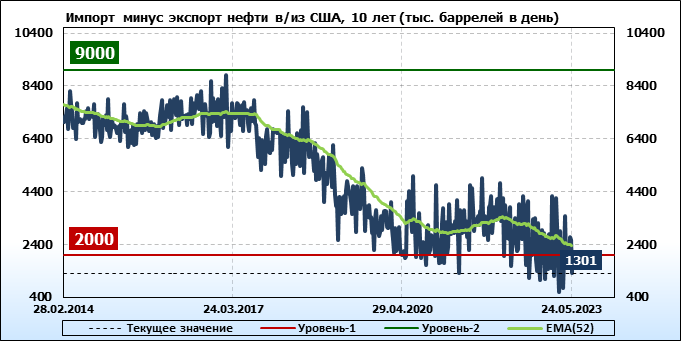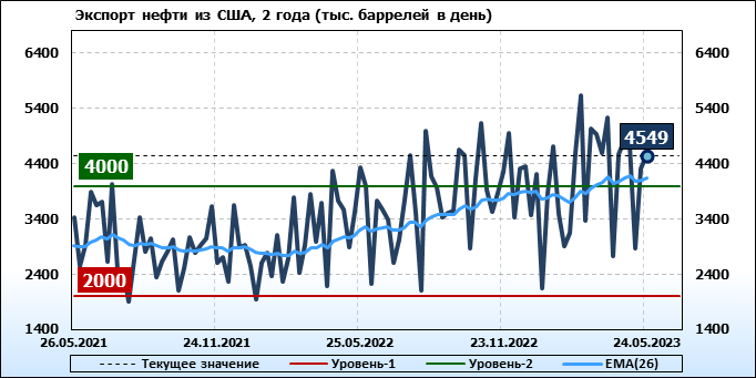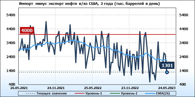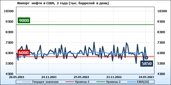 EIA. Добыча, импорт, экспорт нефти в США на 24 мая 2023