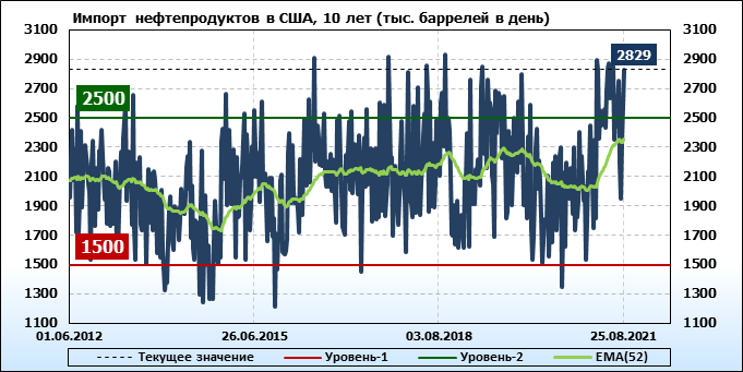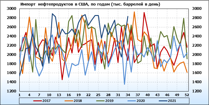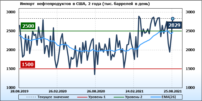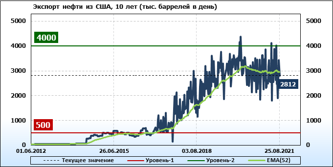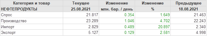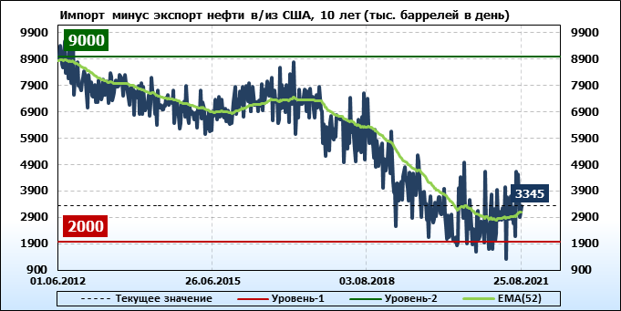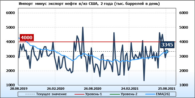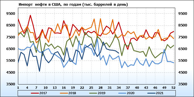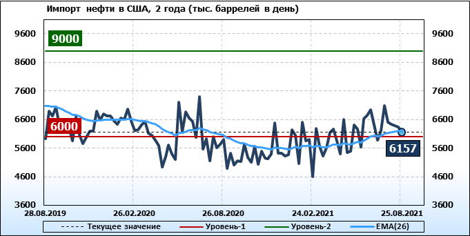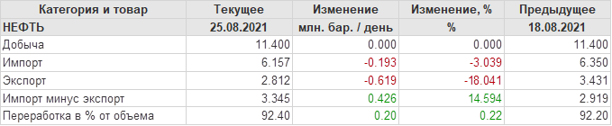 EIA. Добыча, импорт, экспорт нефти в США на 25 августа 2021