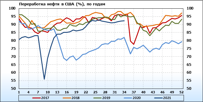 EIA. Коммерческие запасы нефти в США на 25 августа 2021