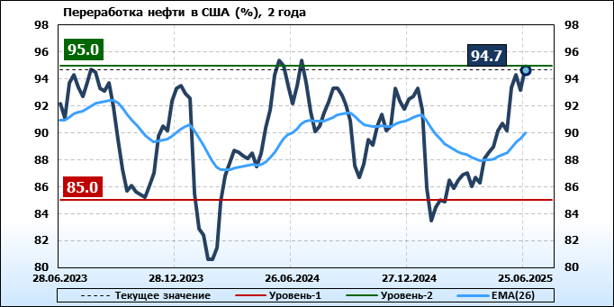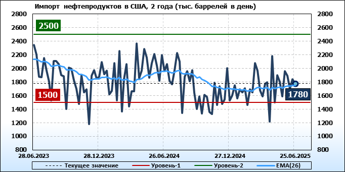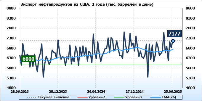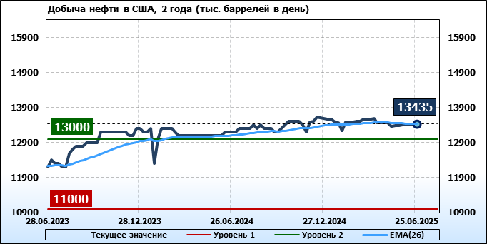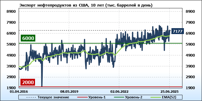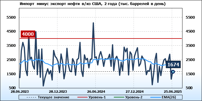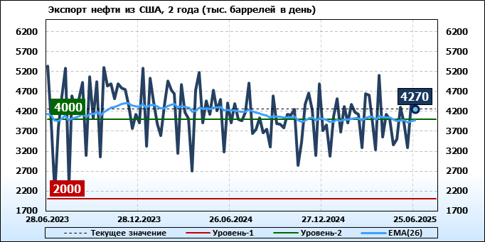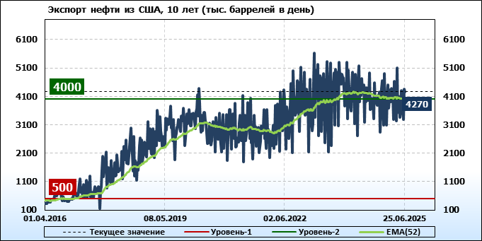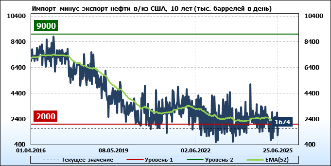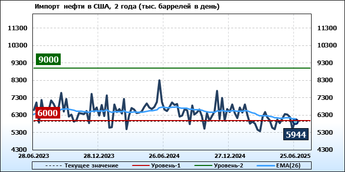EIA. Добыча, импорт, экспорт нефти в США на 25 июня 2025