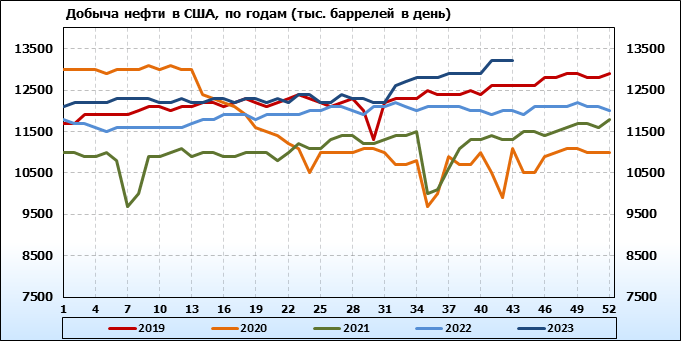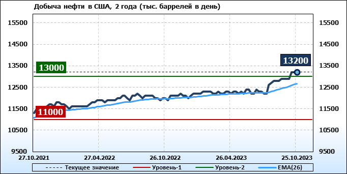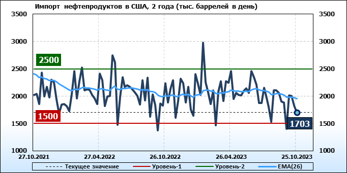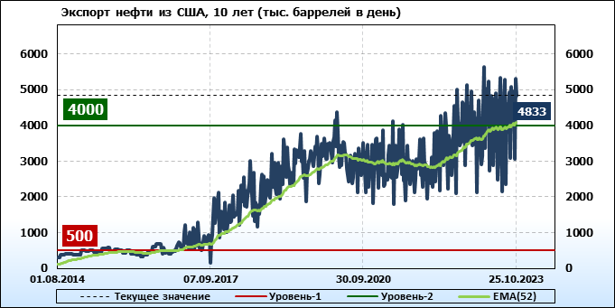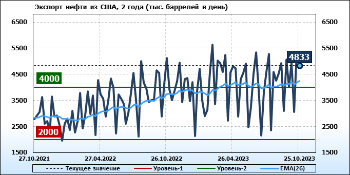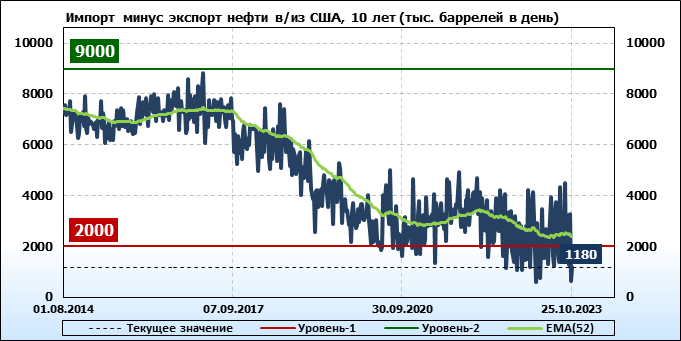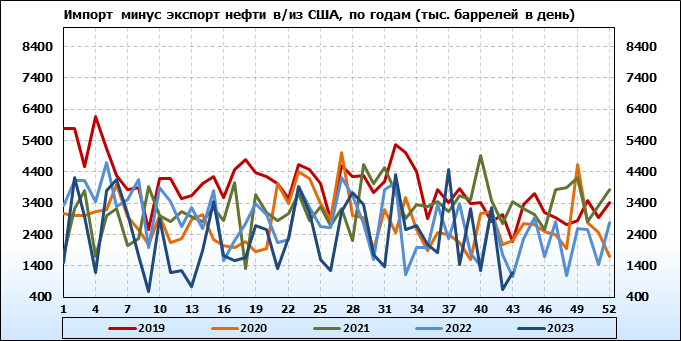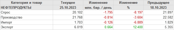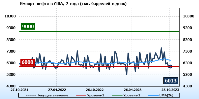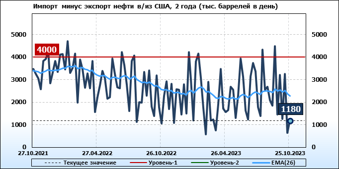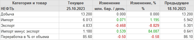 EIA. Добыча, импорт, экспорт нефти в США на 25 октября 2023