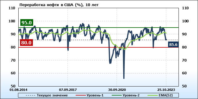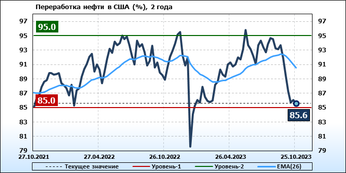EIA. Коммерческие запасы нефти в США на 25 октября 2023