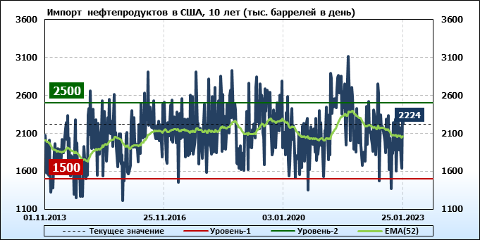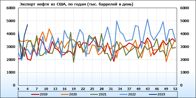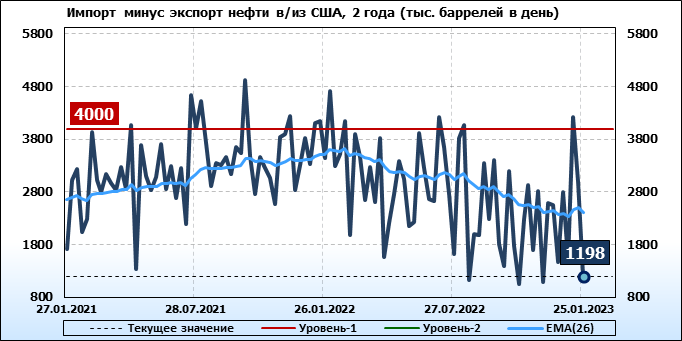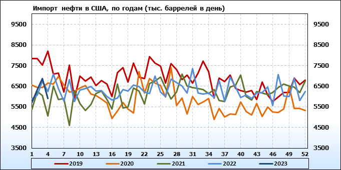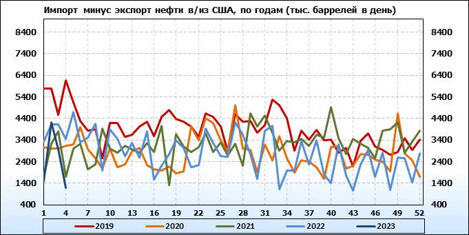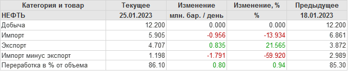 EIA. Добыча, импорт, экспорт нефти в США на 25 января 2023