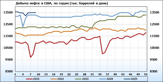 Добыча в США за предыдущую неделю символически выросла – на 5 тысяч баррелей в сутки, до 13,502 миллиона баррелей в сутки.