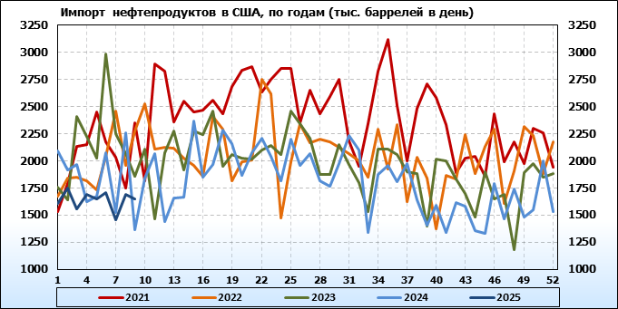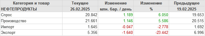 EIA. Добыча, импорт, экспорт нефти в США на 26 февраля 2025
