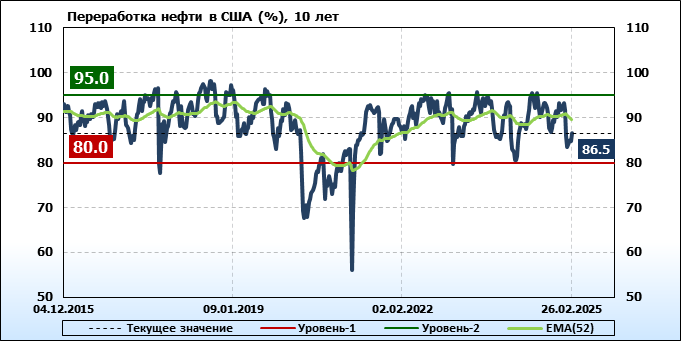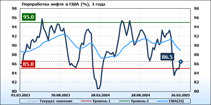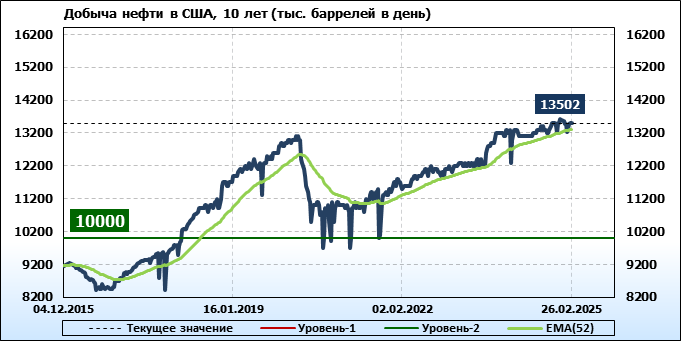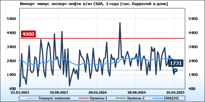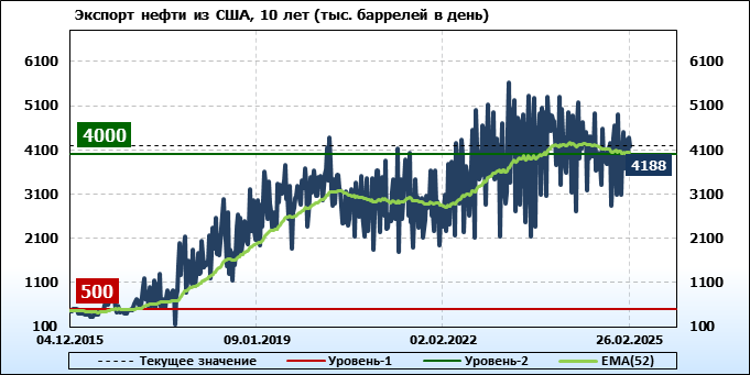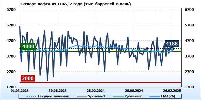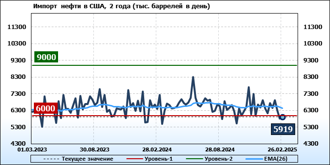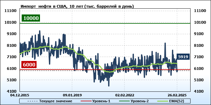 EIA. Добыча, импорт, экспорт нефти в США на 26 февраля 2025