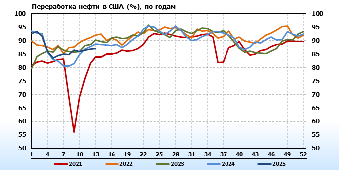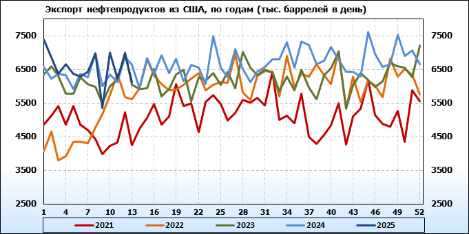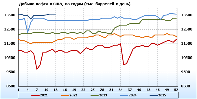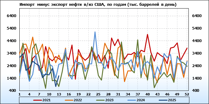 EIA. Добыча, импорт, экспорт нефти в США на 26 марта 2025