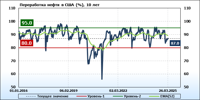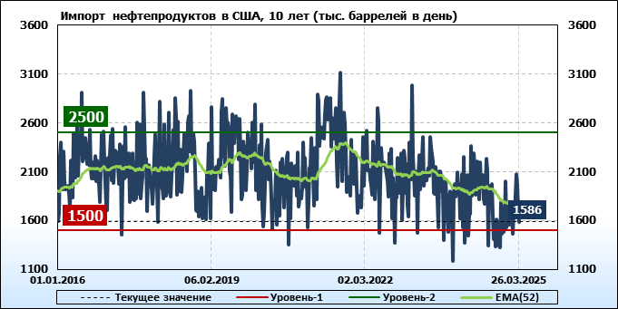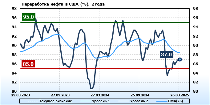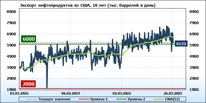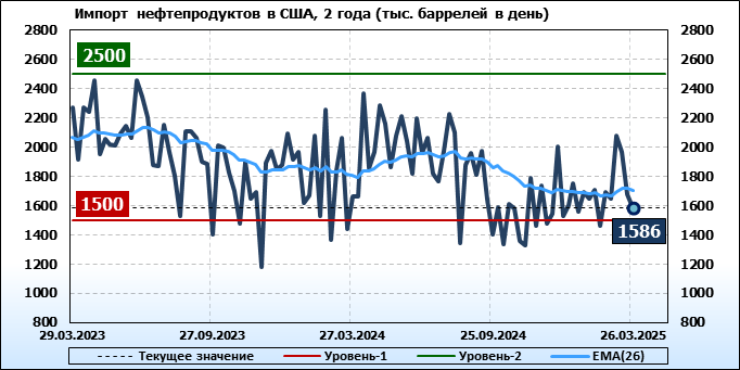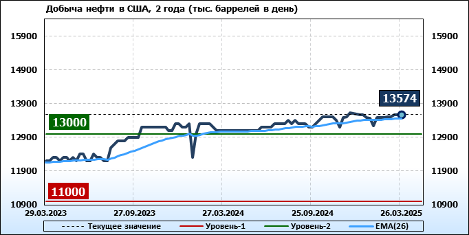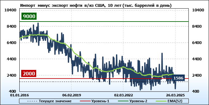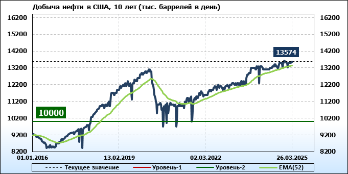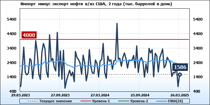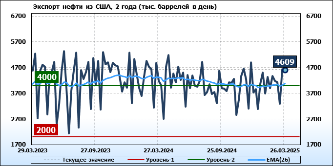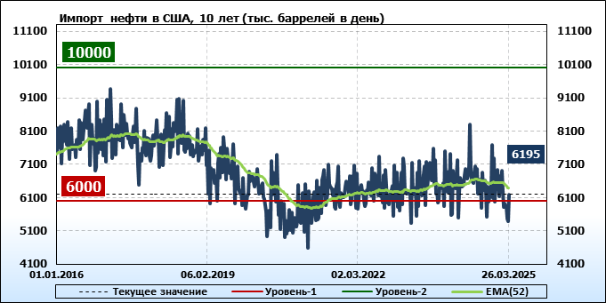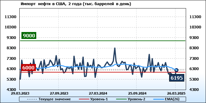 EIA. Добыча, импорт, экспорт нефти в США на 26 марта 2025