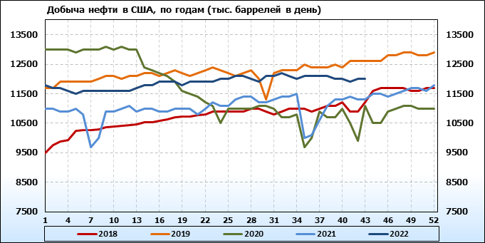 Точные данные о добыче управление сообщает в ежемесячном отчете с разницей в два месяца. По окончательным данным, добыча нефти в США в июле составила 11,8 миллиона баррелей в сутки, а в августе — 11,87 миллиона баррелей; за весь прошлый год — в среднем 11,254 миллиона баррелей в сутки.
