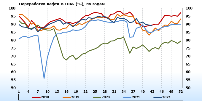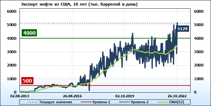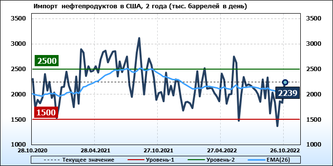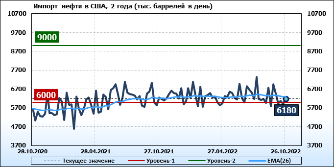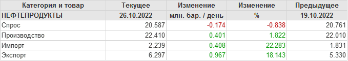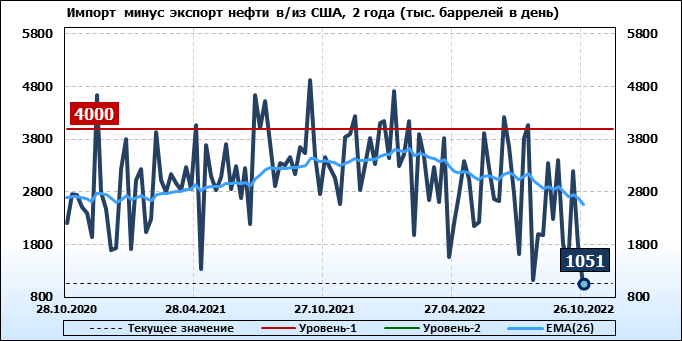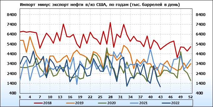 EIA. Добыча, импорт, экспорт нефти в США на 26 октября 2022