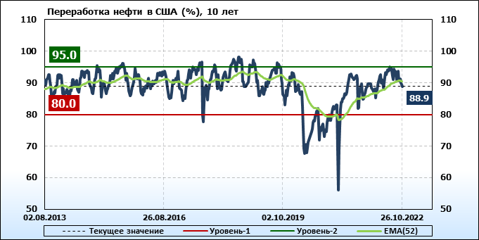 EIA. Коммерческие запасы нефти в США на 26 октября 2022