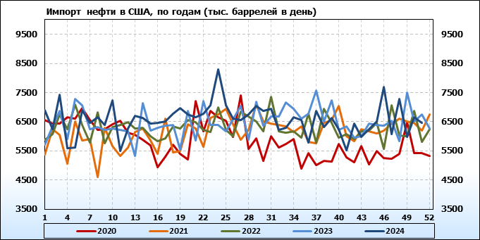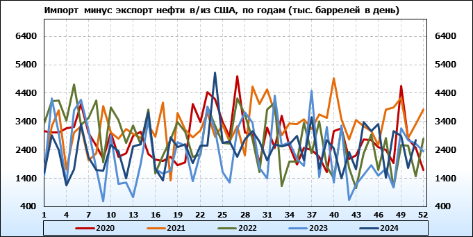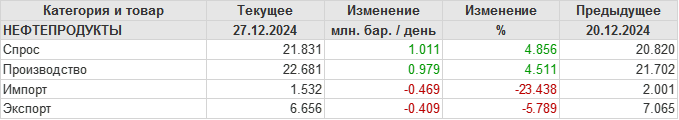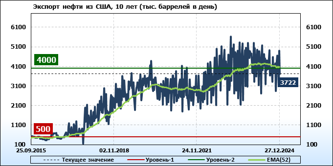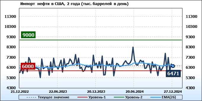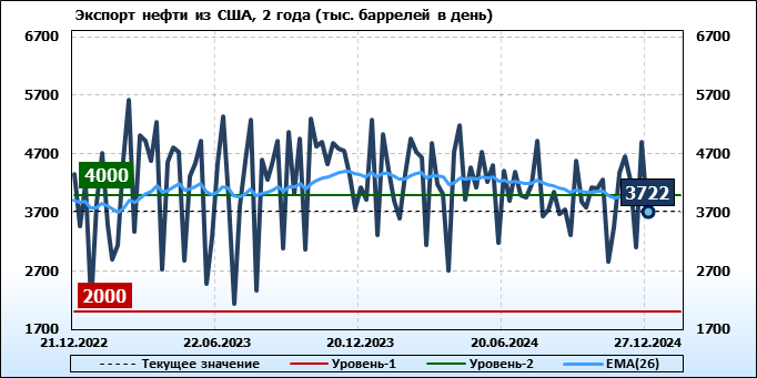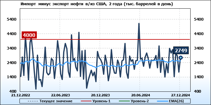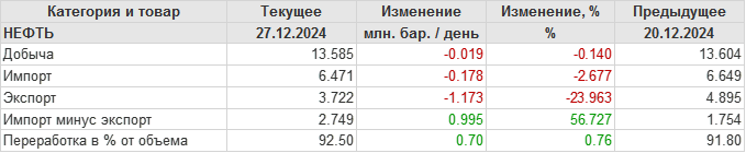 EIA. Добыча, импорт, экспорт нефти в США на 27 декабря 2024